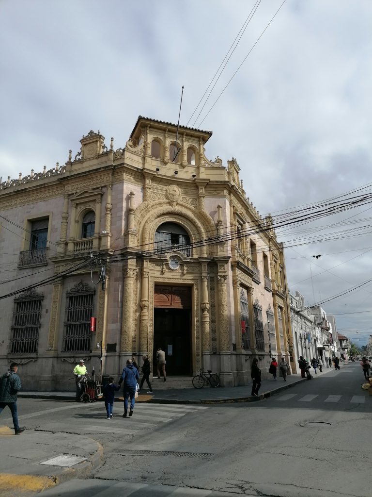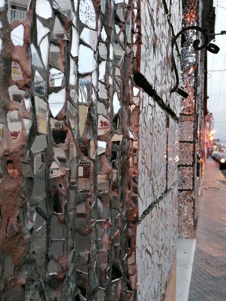Die Nacht im Bus wird kurz für mich, ich kann kaum schlafen. Sara hat sich Hilfe von ein paar pflanzlichen Schlafmitteln geholt, die haben gut geholfen. Trotzdem enden wir wieder in der Situation, um halb fünf Uhr früh am Terminal in Salta anzukommen und dort müssen wir warten, bis irgendetwas aufmacht. Ins Hostel können wir frühestens um neun in ein Café frühestens um acht. Ughh, ich hasse diese Situation. Ich versuche mich nochmal auf den unbequemen Bänken hinzulegen und tatsächlich kriege ich noch ein bisschen Ruhe. Irgendwann macht dann Gepäcklager auf, wir geben unsere Sachen ab und suchen nach einem Ort, wo wir frühstücken können. Während wir in die Innenstadt laufen kommen wir an einem Haus vorbei, dessen Außenfassade aus Spiegelsplittern ist. Sieht richtig cool aus: