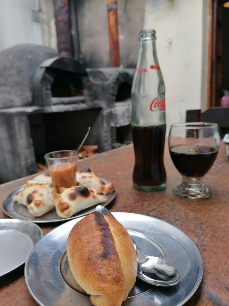 Gegen Mittag kriege ich Hunger und suche mir ein kleines Restaurant, in dem einem die Empanadas direkt im Ofen zubereitet werden. Im ganzen Raum hängt der Geruch nach Rauch und frischem Teig, es ist herrlich.