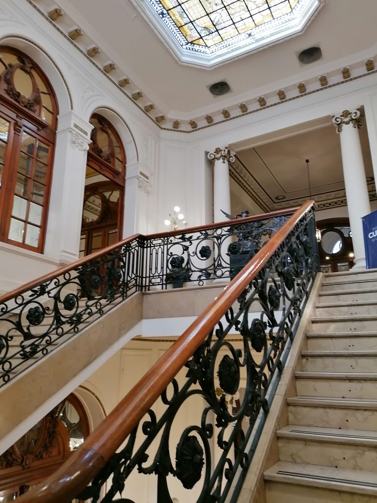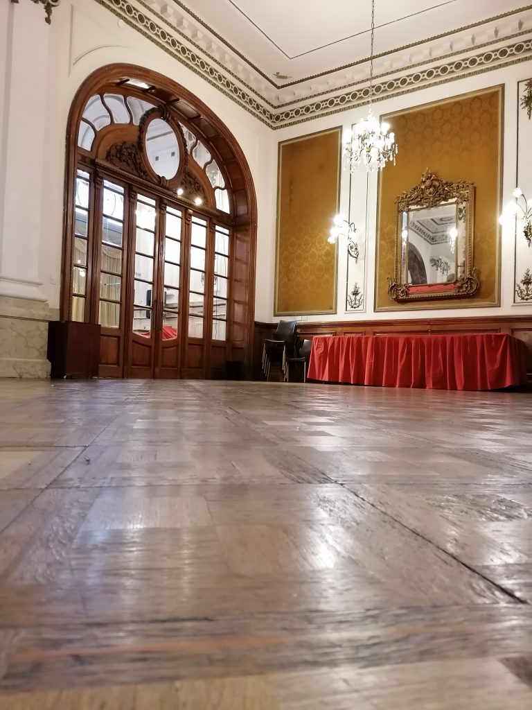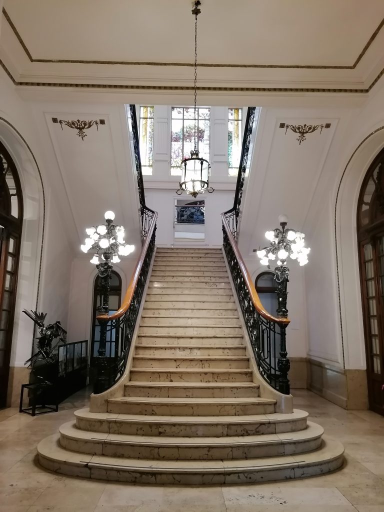 Mein letzter Stopp, das archäologische Museum hat heute leider geschlossen. Dafür gehe ich in das Gebäude nebenan, eine Art Kulturzentrum/ Museum in dem ein paar zeitgenössische Fotos hängen, Plakate oder ähnliches. Das Gebäude selbst ist aber schon beeindruckend genug. Ich erfahre, dass das früher ein Club der höheren Gesellschaft war… deshalb also der Prunk. Oben im Ballsaal kann ich nicht anders, als ein paar Pirouetten zu drehen, bin ehe alleine hier.