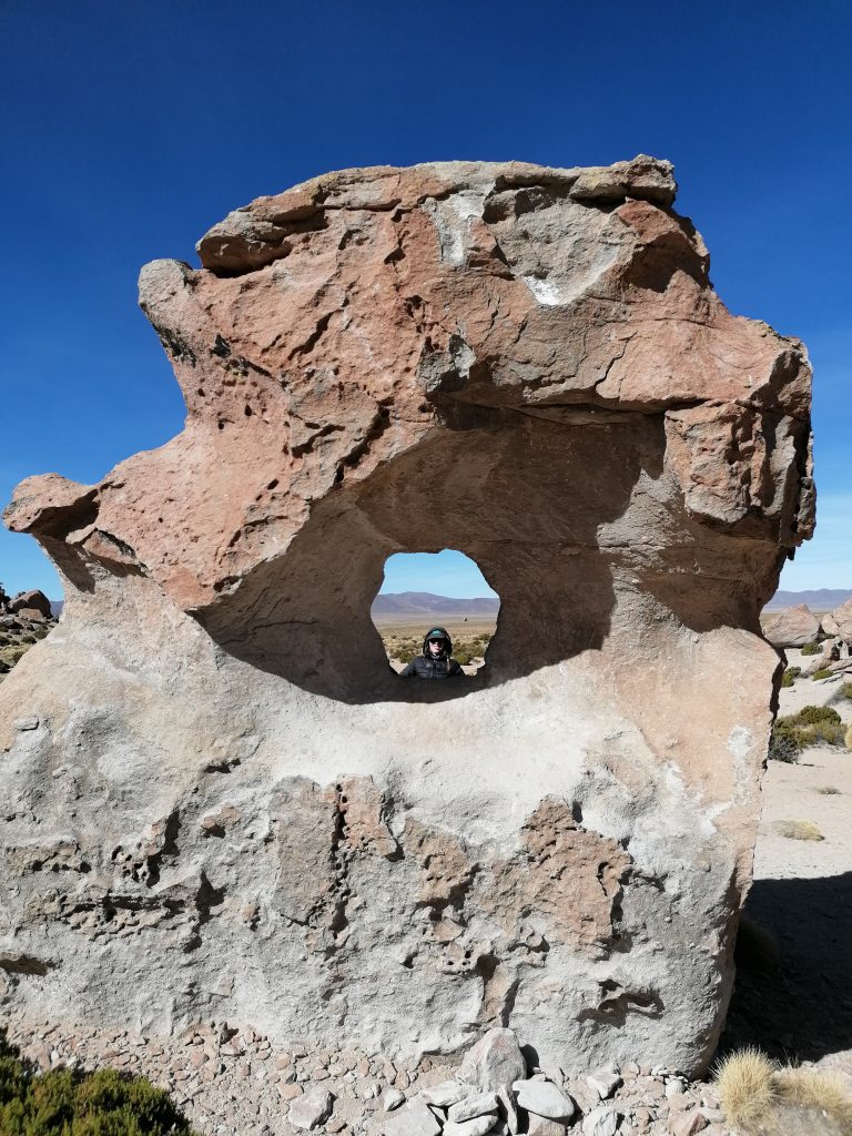 So langsam denke ich mir auch, so nett Nelson ja ist, er erklärt nicht wirklich viel. Liegt vielleicht auch daran, dass die Polen eher desinteressiert sind, und wir interessierten Menschen weit hinten sitzen. Mittlerweile sind die Knieschmerzen echt übel, vor allem, weil wir während der Huggelpiste auch immer gegen die Rücksitze der anderen knallen… Die Polen warten wieder ungeduldig und rufen uns aus der Ferne schon zu „VAMOS!“ (Gehen wir!) Ich lasse mir extra viel Zeit und mache nochmal ein extra Foto und steige dann erst ins Auto.