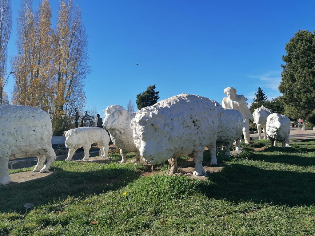 Wir schlafen eine erholsame Nacht in einem bequemen Bett und einem warmen Zimmer. Das Frühstück ist inkludiert, sodass wir es uns am nächsten Morgen beim Essen gut gehen lassen und uns dann in aller Ruhe eine neue Unterkunft suchen. Die ist auch gleich um die Ecke, ein schönes Hostel und deutlich näher in unserer Preisklasse. Wir sind in zehn Laufminuten dort, stellen unsere Sachen ab und machen uns dann auf, den Tag in der Stadt zu verbringen. Die Sonne scheint, ein seltenes Phänomen für Chile um diese Jahreszeit. Es ist herbstlich kalt, aber die Stadt gefällt uns gut. Wir kommen am Monument des Schäfers vorbei, ein Monumet für die klassische Landarbeit in Chile, die dort seit Urzeiten vorherrscht, damals wie heute, und ein Symbol für Patagonien selbst ist: Der Schäfer mit seinem Hund und seinem Pferd, bei der täglichen Arbeit.