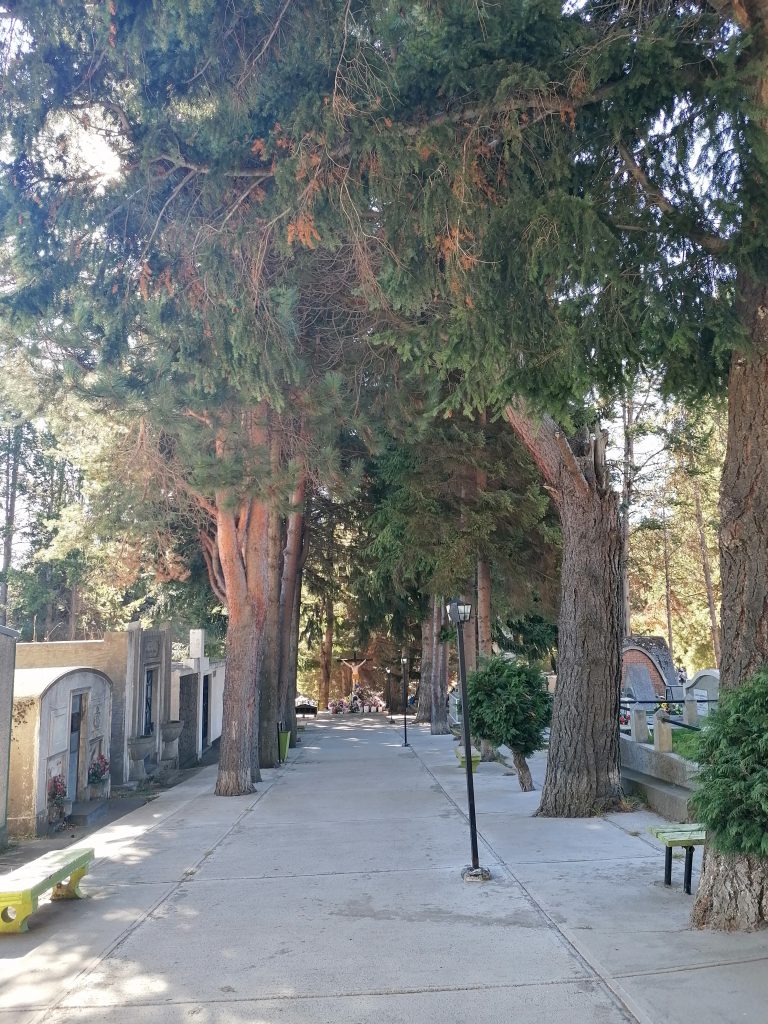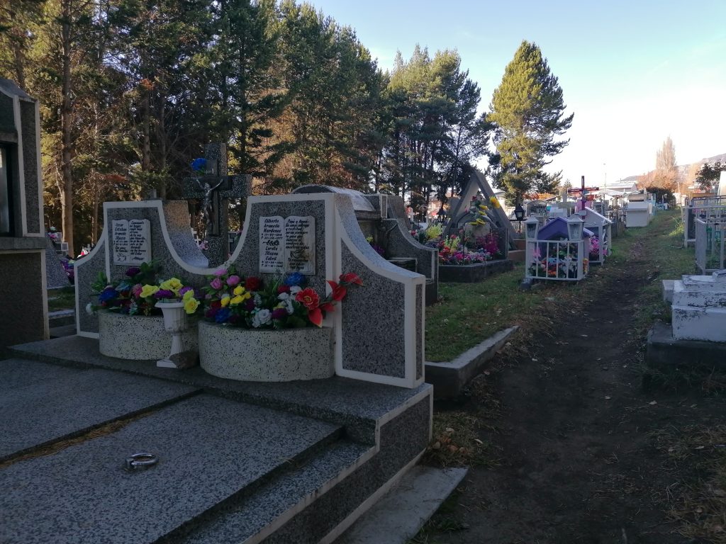 Es gefällt uns richtig gut… ja, okay, das klingt jetzt komisch. Aber wir setzen uns auf eine Bank in der Sonne, genießen die Ruhe und die Wärme… und mir fällt plötzlich auf, dass wir ja total das typisch chilenische Essen verpassen, wenn wir nie ins Restaurant gehen. Maria versteht sofort, was ich meine, erzählt mir aber, dass sie von einer Bekannten erfahren hat, dass es ein einfaches typisch chilenisches Gericht gibt, dass man wie einen Döner auf die Hand bekommt: Completos! Die könnten wir ja mal suchen. Ich stimme zu, das wäre schön. Mit dem Gedanken an Essen, Genuss, Leben… verlassen wir den Friedhof.