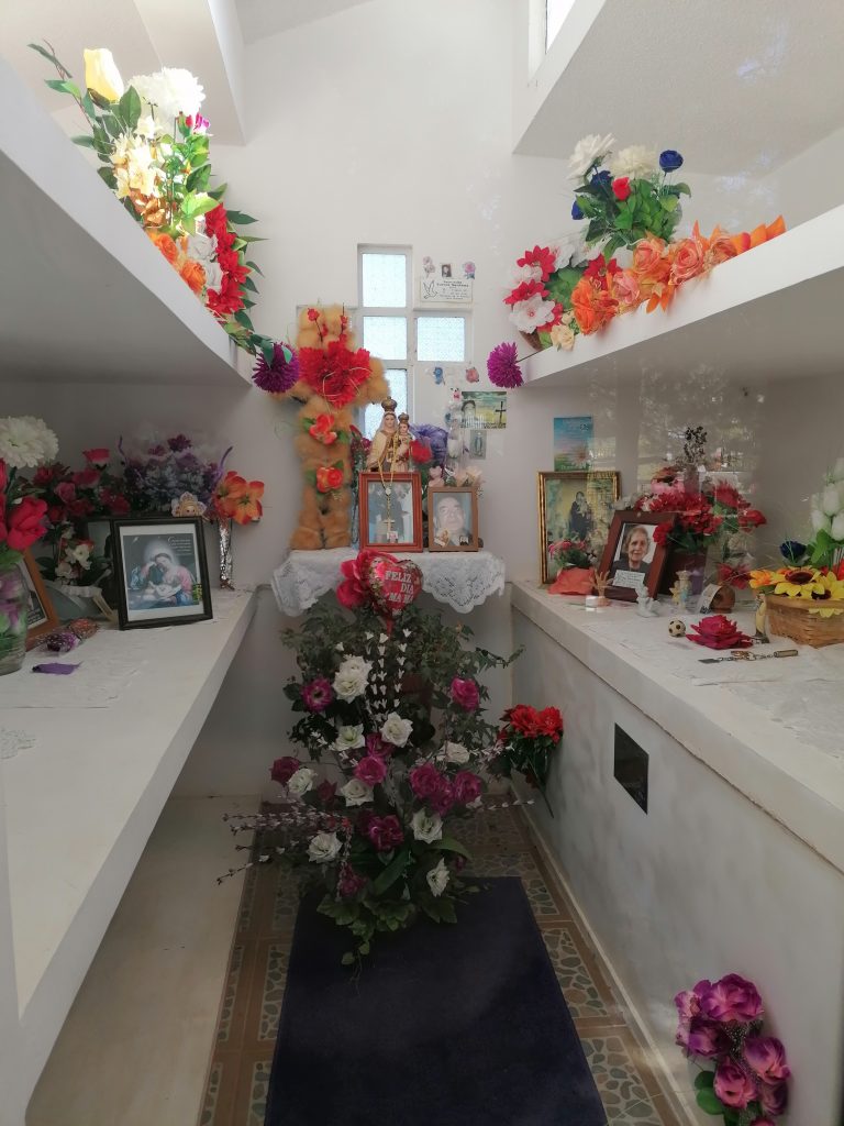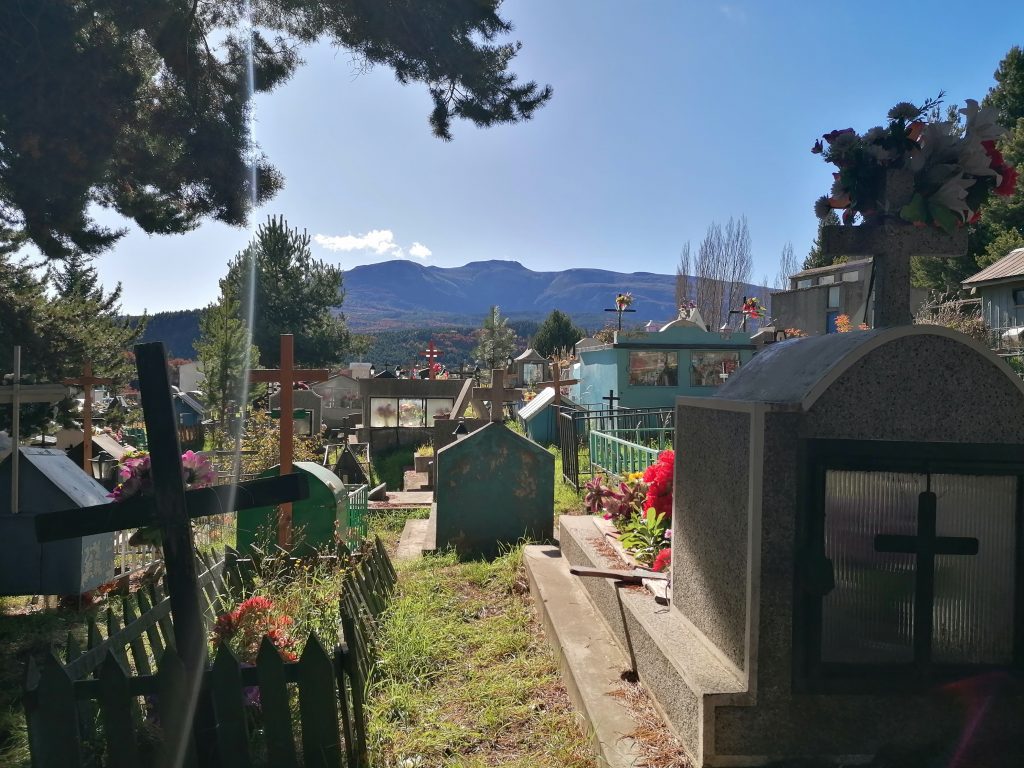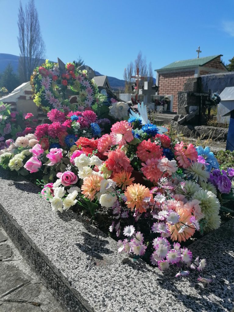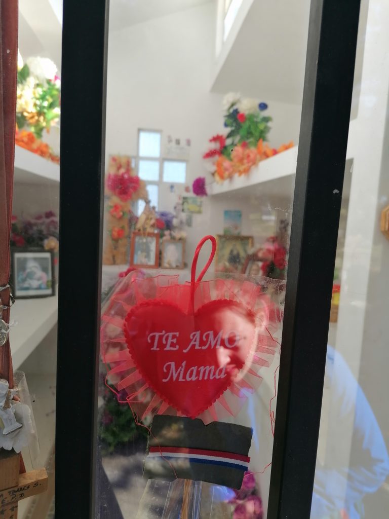 Wir kommen am Stadtfriedhof vorbei und beschließen, einen Blick reinzuwerfen. Ähnlich wie in Argentinien gibt es kleine Häuser/Tempel für die reicheren und kleinere Gräber am Boden für die „Normalbevölkerung“. Uns fällt auf, dass es überraschend hell, bunt und sehr liebevoll gestaltet ist. Zwar sind die Blumen alle aus Plastik, aber es sind nicht nur Blumen, auf kleine Windräder und alle mögliche Dekoration bis hin zu Kuscheltieren, die liebevoll neben den Gedenksteinen liegen. Es ist ein Ort, an dem man gerne kommt, um Oma/Opa, Mama/Papa zu besuchen. Es ist alles andere, als eine düstere Erinnerung an den Tod.
