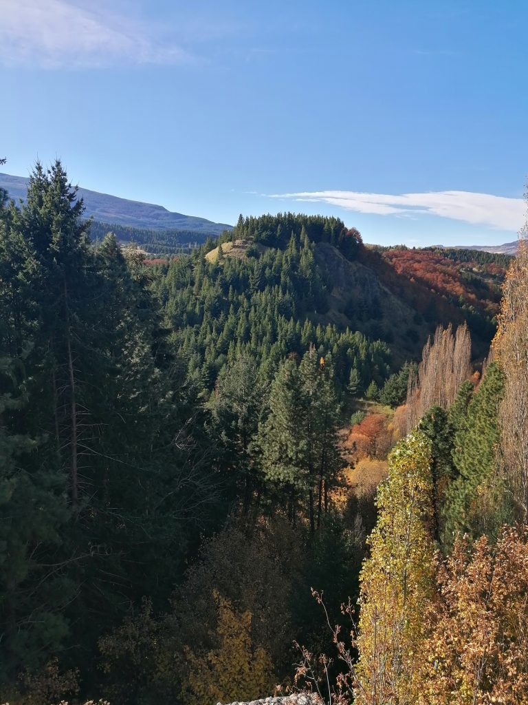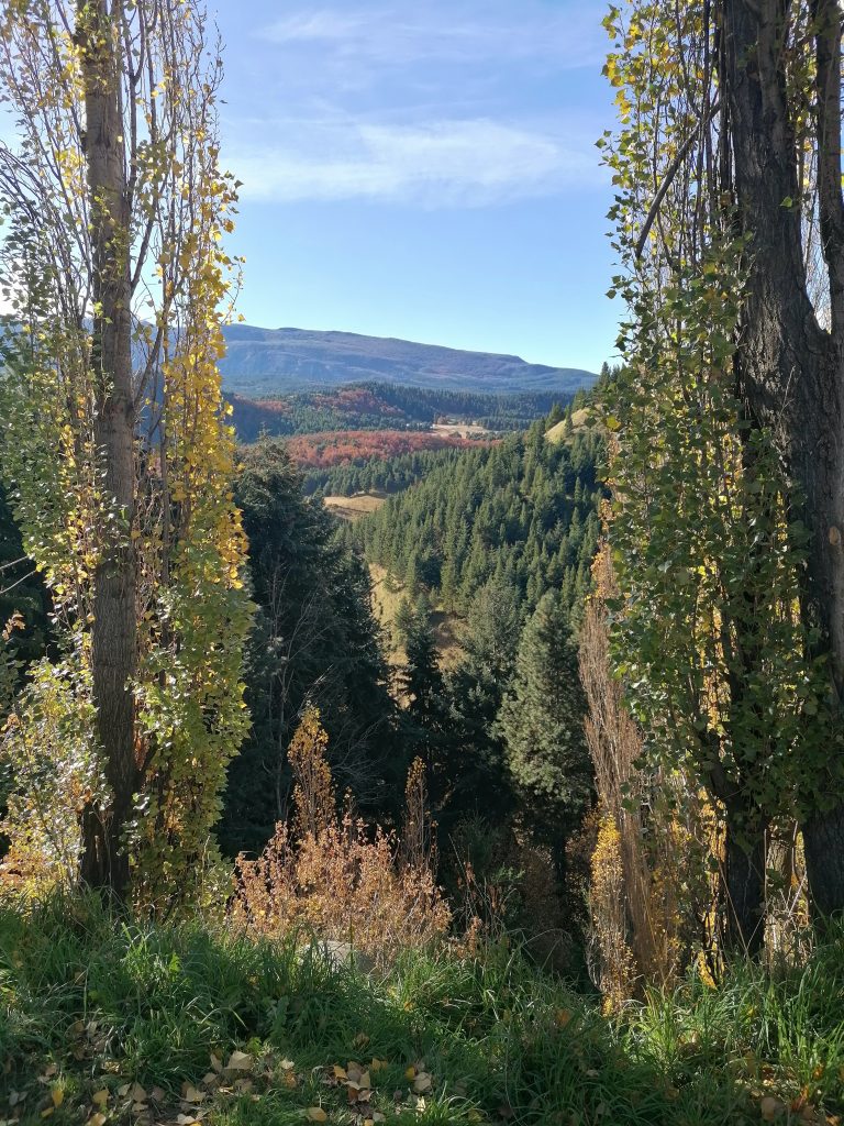 Auch der Sonnenuntergang, der die Berge und den Himmel rot färbt ist eine eindrucksvolles Spektakel. Außerdem fahren wir an Wäldern vorbei, die komplett grün sind, aber plötzlich tauchen drei Streifen gelbgefärbte Bäume auf, die sich den ganzen Berg hinaufziehen, was ich mir absolut nicht erklären kann.