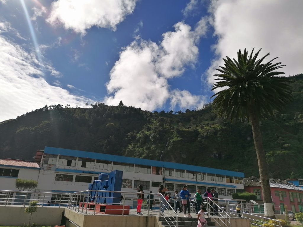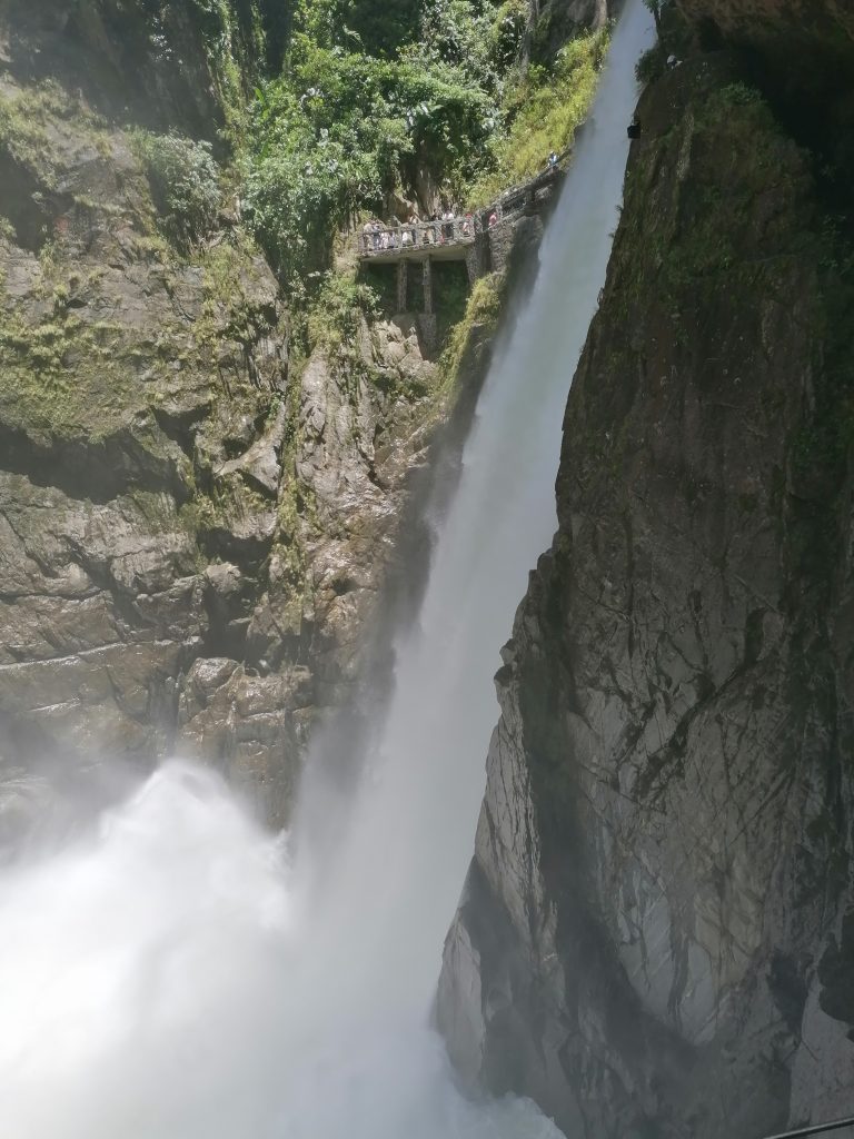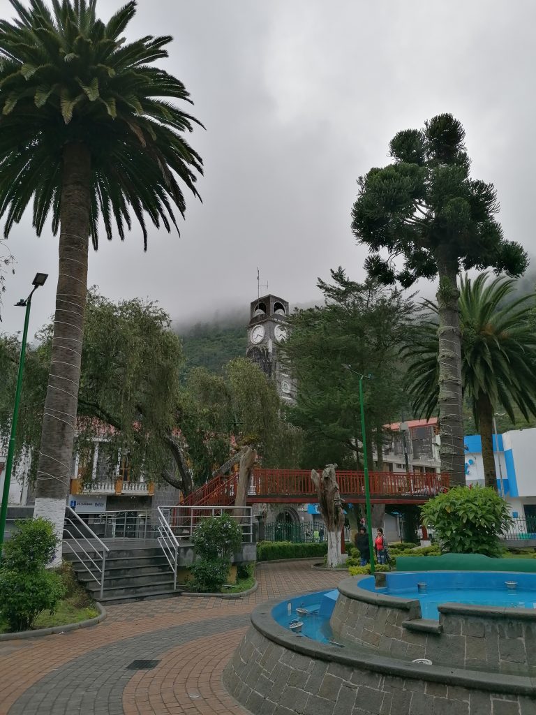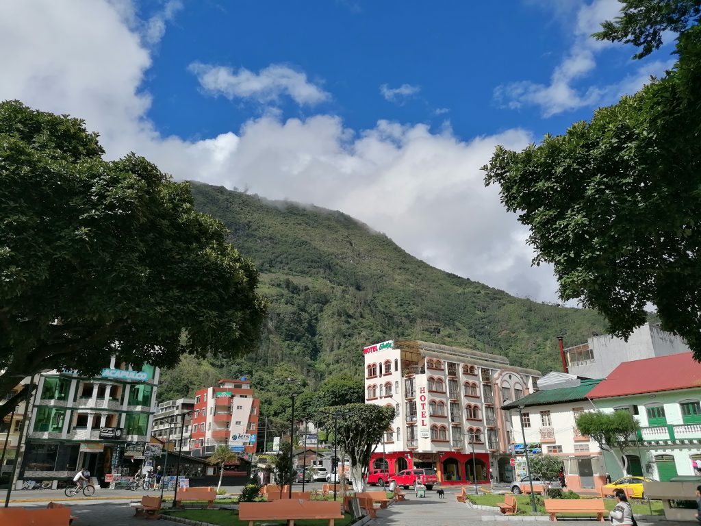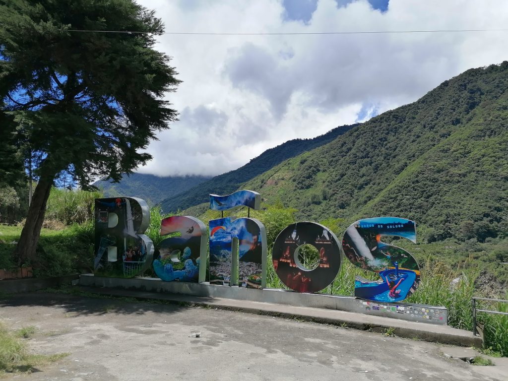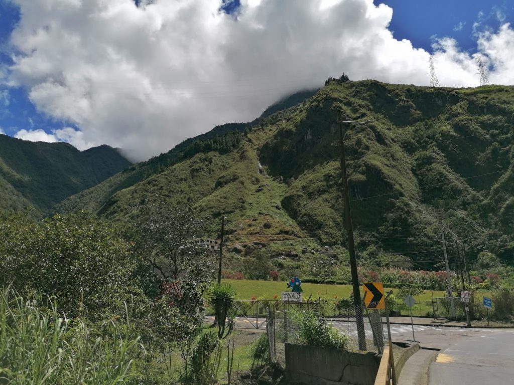 Ein halbe Stunde später bin ich in Baños, einem kleinen Dorf zwischen grünen Bergen und vielen Wasserfällen, wirklich schön…