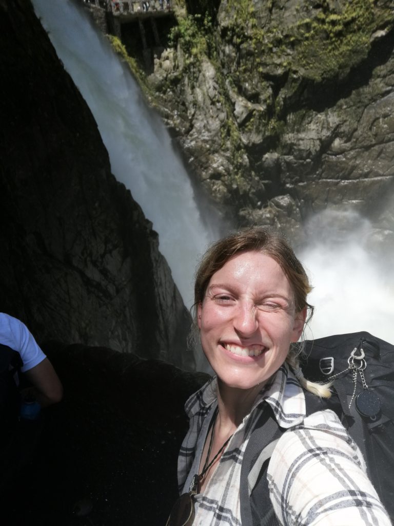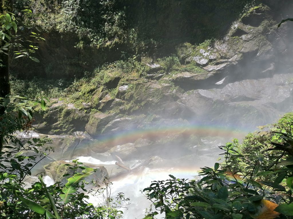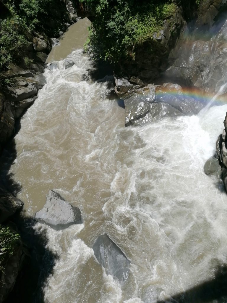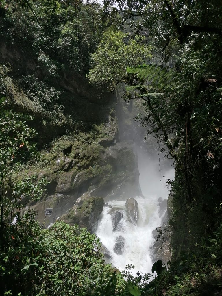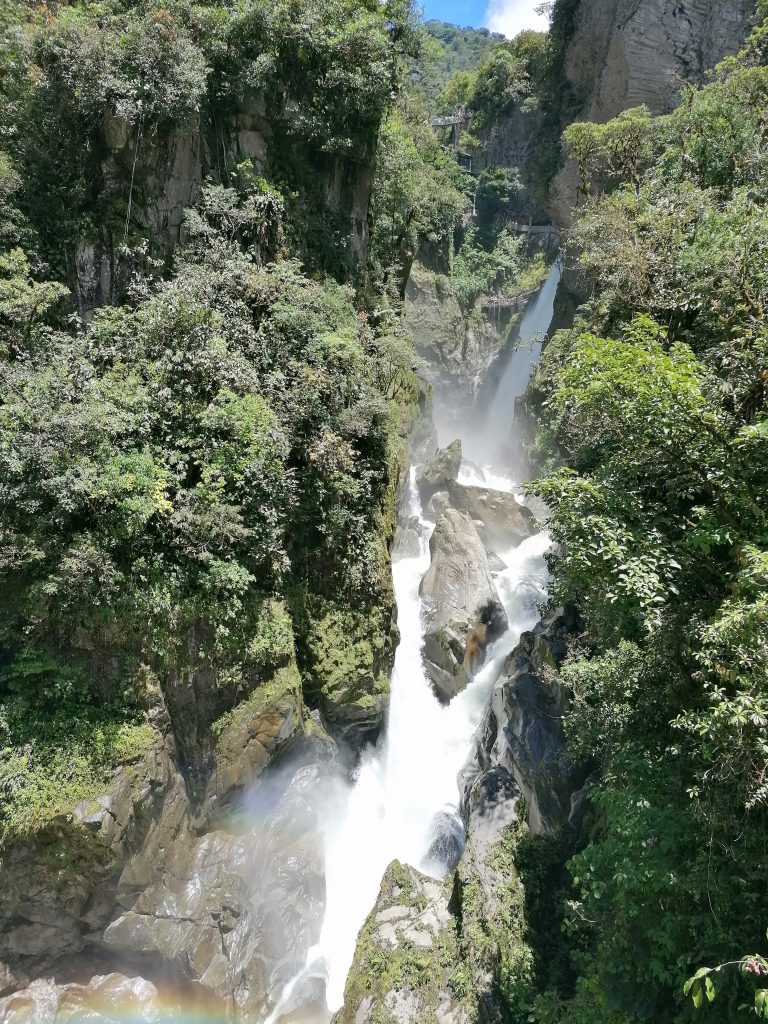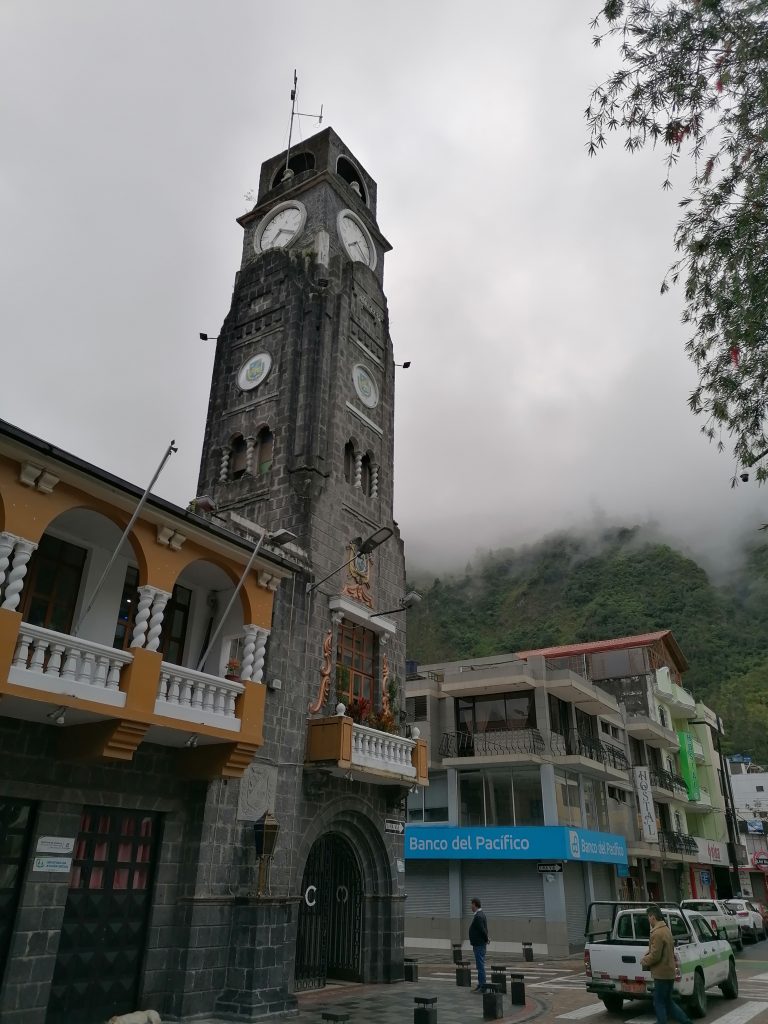 Ein halbe Stunde später bin ich in Baños, einem kleinen Dorf zwischen grünen Bergen und vielen Wasserfällen, wirklich schön…