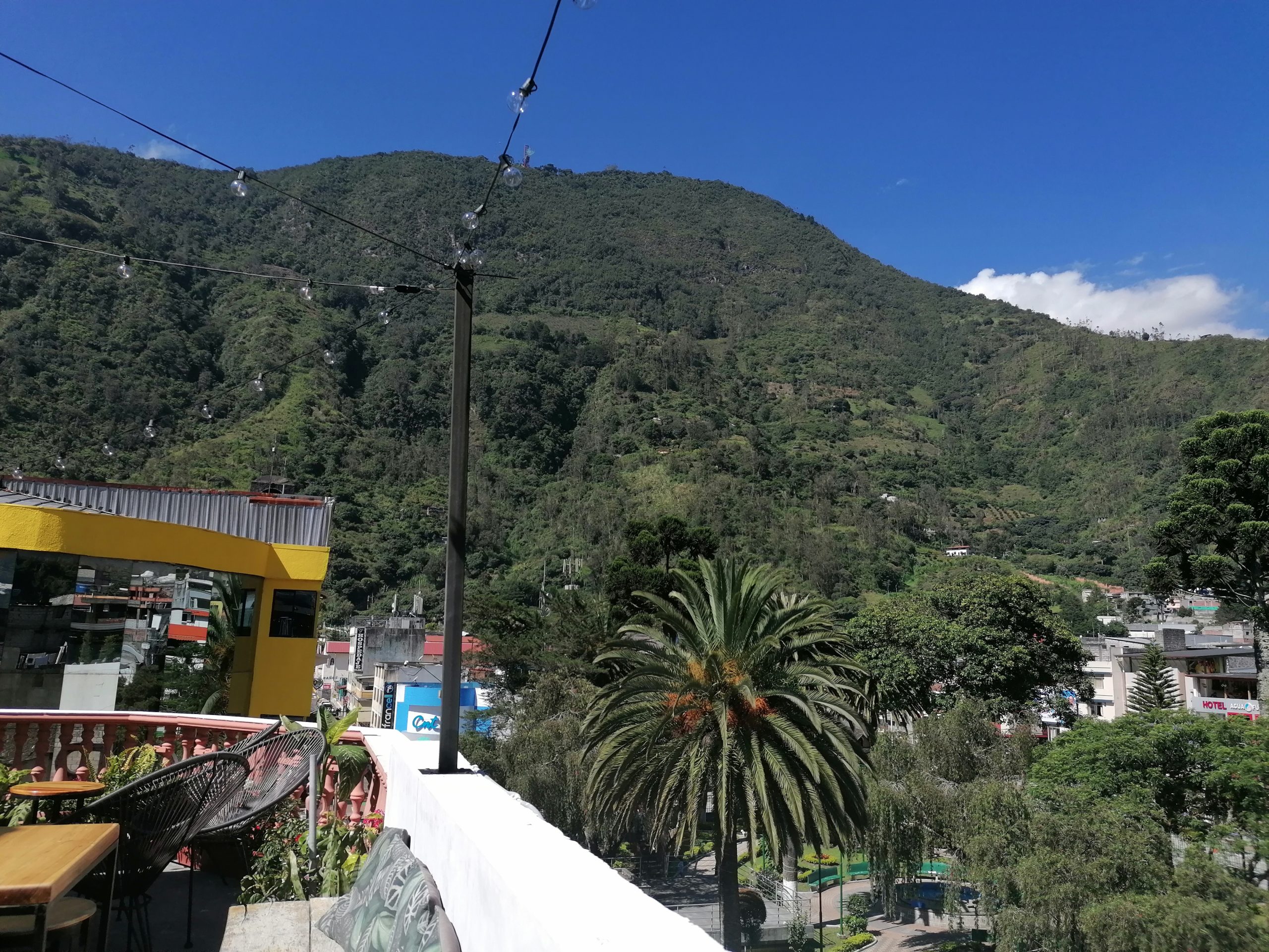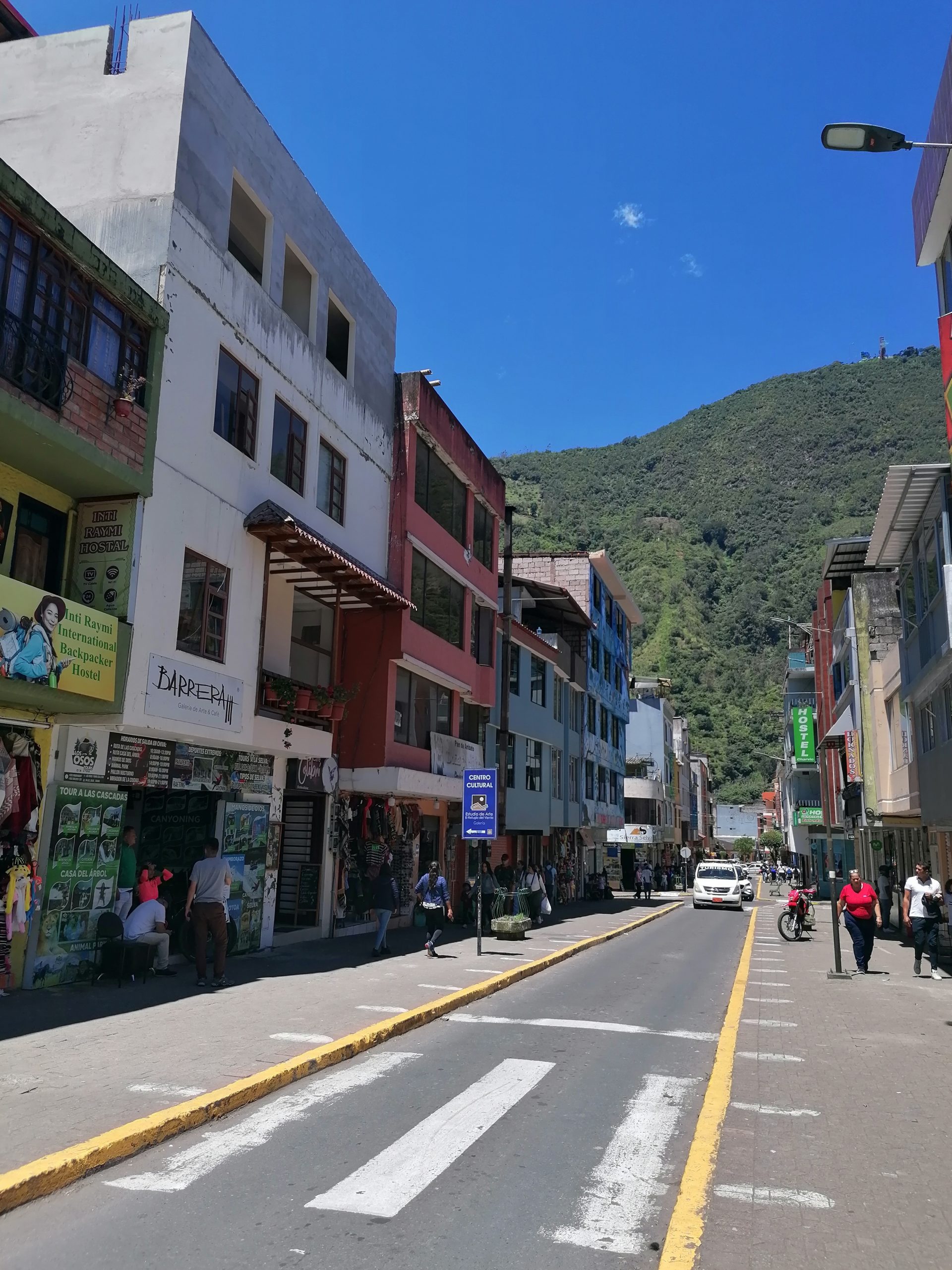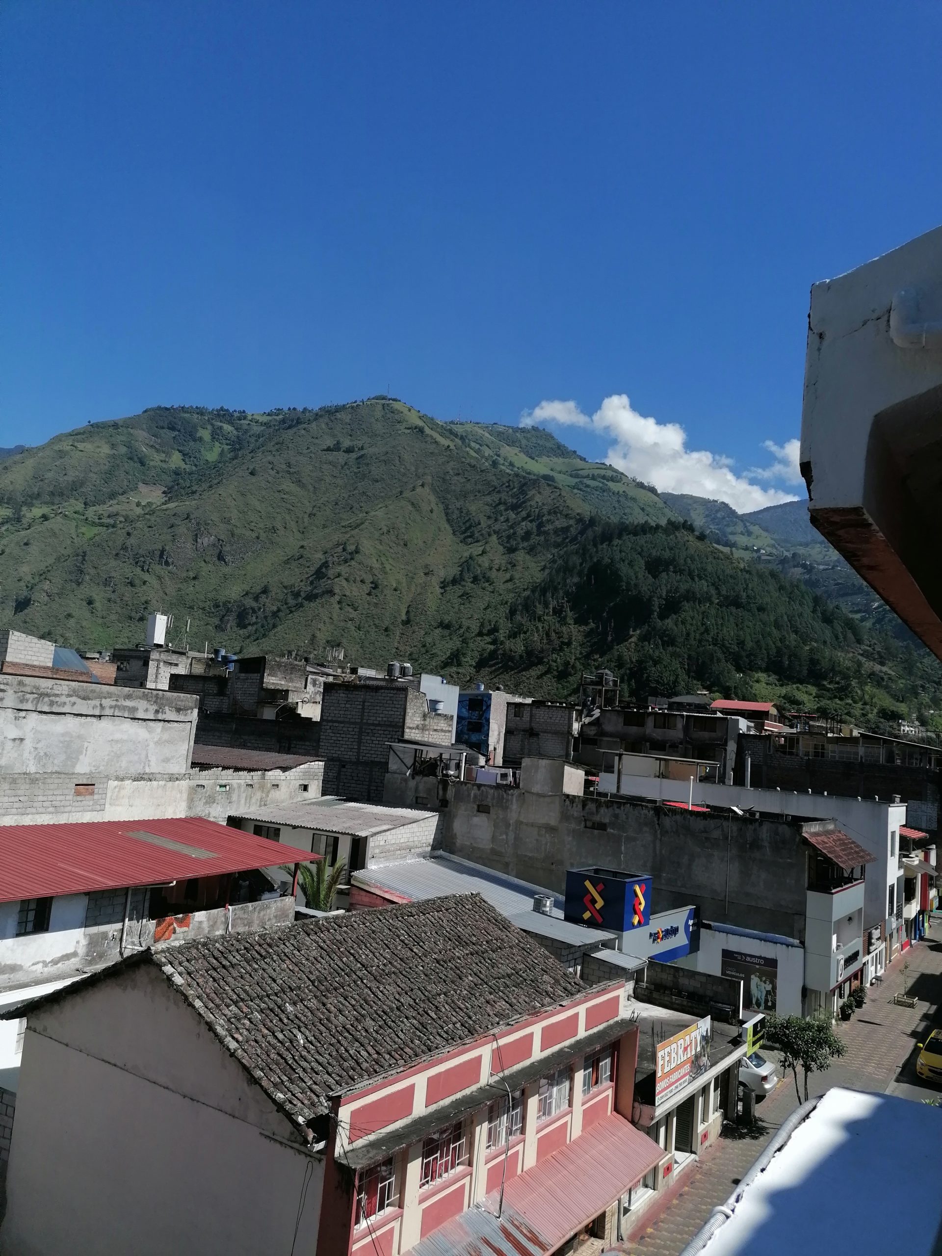 Schlafen kann ich mal wieder kaum… das ist in letzter Zeit echt deutlich schlechter geworden, früher hab ich da mehr Ruhe abbekommen. Früh um 6 hält der Bus, wir sind jetzt da. Ich steige aus und stehe auf irgendeiner Straße, mein Rucksack wird mir ausgegeben und schon fährt der Bus weiter, gleichzeitig hämmert schon der erste Taxifahrer auf mich ein. Ich bin fassungslos, dass der Bus mich irgendwo im Nirgendwo aussetzt, ohne Richtungsbeschreibungen, wo ich weiterkomme. Der Taxifahrer will mich zu einem Terminal bringen, was ich mit halbem Ohr annehme, doch als wir dort ankommen, ist es dort leer und dunkel. Dort bleibe ich mich Sicherheit nicht alleine und kriege einen kleinen Wutanfall, den der arme Taxifahrer abkriegt, der mir in dem Fall wirklich nur helfen wollte. Ich entschuldige mich, er hat noch eine Idee, wo wir hinfahren können und kurz darauf stehen wir wieder auf der Straße von eben, nur auf der Tankstelle auf der anderen Seite… und tatsächlich fährt direkt dort ein Regionalbus nach Baños. Ein Wort von den Busfahrern zuvor hätte gereicht, „geh auf die andere Seite, dort fährt der Bus“. Wahrscheinlich wusste es der Taxifahrer auch und wollte doch nur mehr Geld verdienen, mittlerweile unterstelle ich das allen Leuten… weil es einfach so ist.
