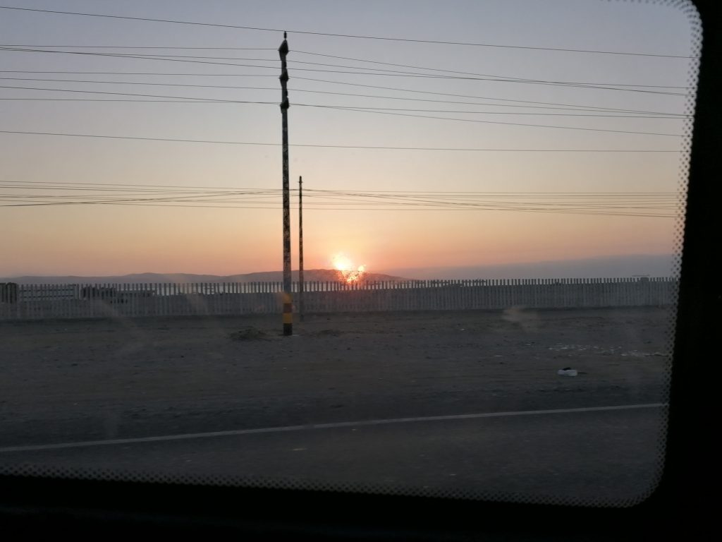 10 Minuten später hält der Bus an einem Innenhof mit einem Schnellrestaurant, das ist jetzt die „Pause, die angekündigt wurde“. Es ist 14:30 Uhr. Die Leute sind durchgekocht, am Verhungern und strömen ins Bad. Ich versuche, meine Wut zu kontrollieren und nicht auf die Busfahrer loszugehen, kaufe mir was Kühles zu trinken, laufe draußen auf und ab. Wir fotografieren Name und Nummernschild des Buses, um es der Polizei zu nennen. Nach einer Stunde geht es weiter. Nach der Pause geht es allen ein bisschen besser. Die restlichen vier Stunden überleben wir noch irgendwie, dann schmeißt uns der Bus auf der Autobahn beim Ortseingang zu Pisco raus.