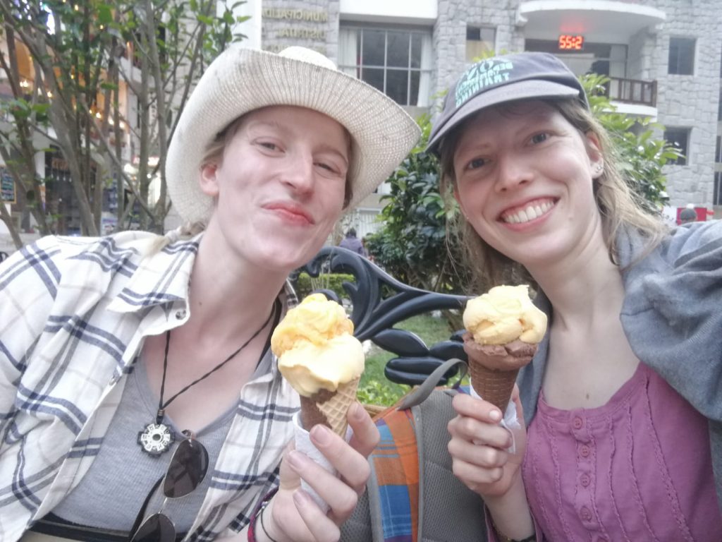 Fünf Minuten später kommen wir aus dem Gebäude mit unseren Tickets zu Machu Picchu und sind ein bisschen perplex. DER Machu Picchu, DAS Highlight von Peru, eines der ACHT NEUEN Weltwunder und wir mussten nicht länger warten, als wenn man am Dienstag Vormittag beim Dorf-ALDI an die Kasse geht. Auf den Schock brauchen wir jetzt erstmal ein Eis.