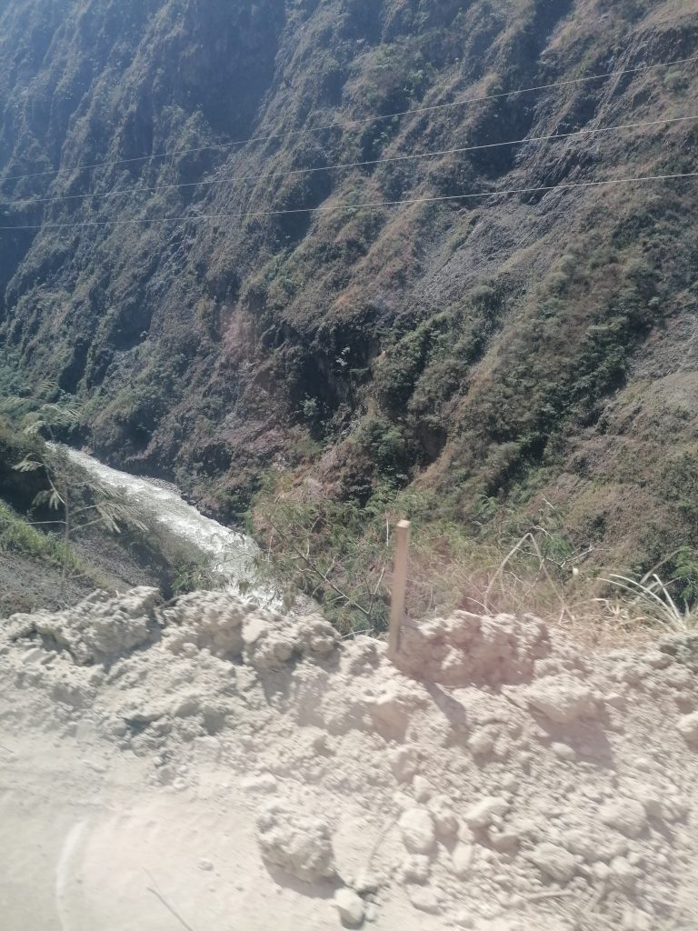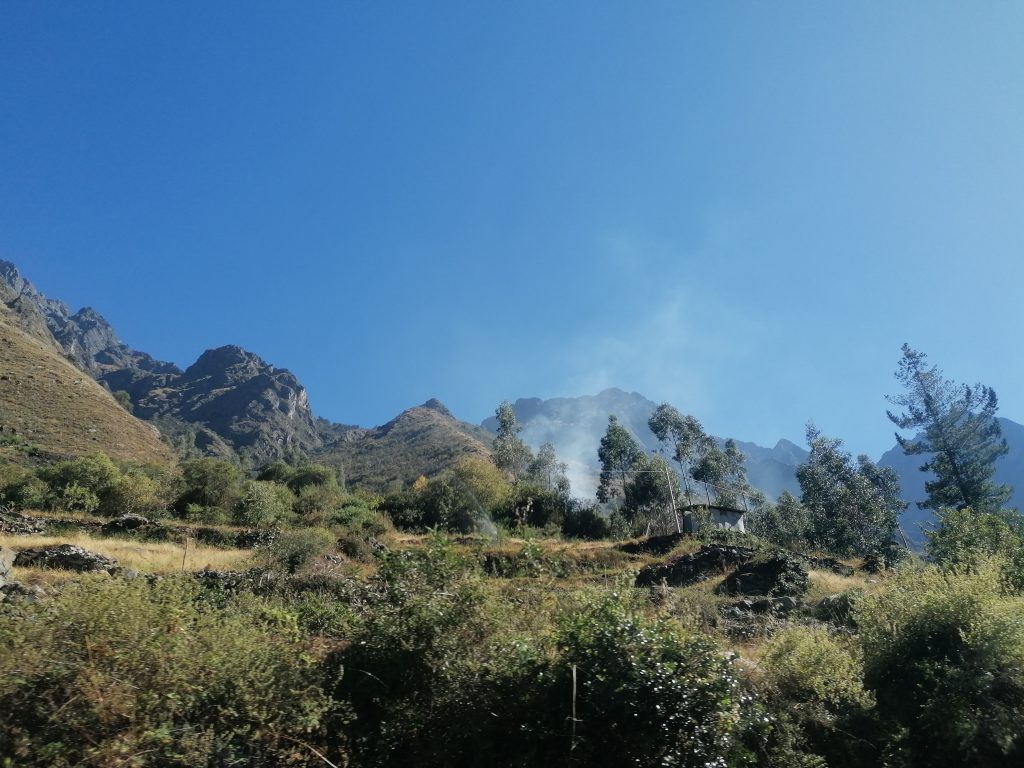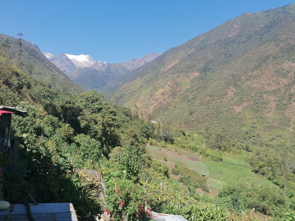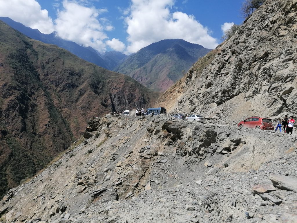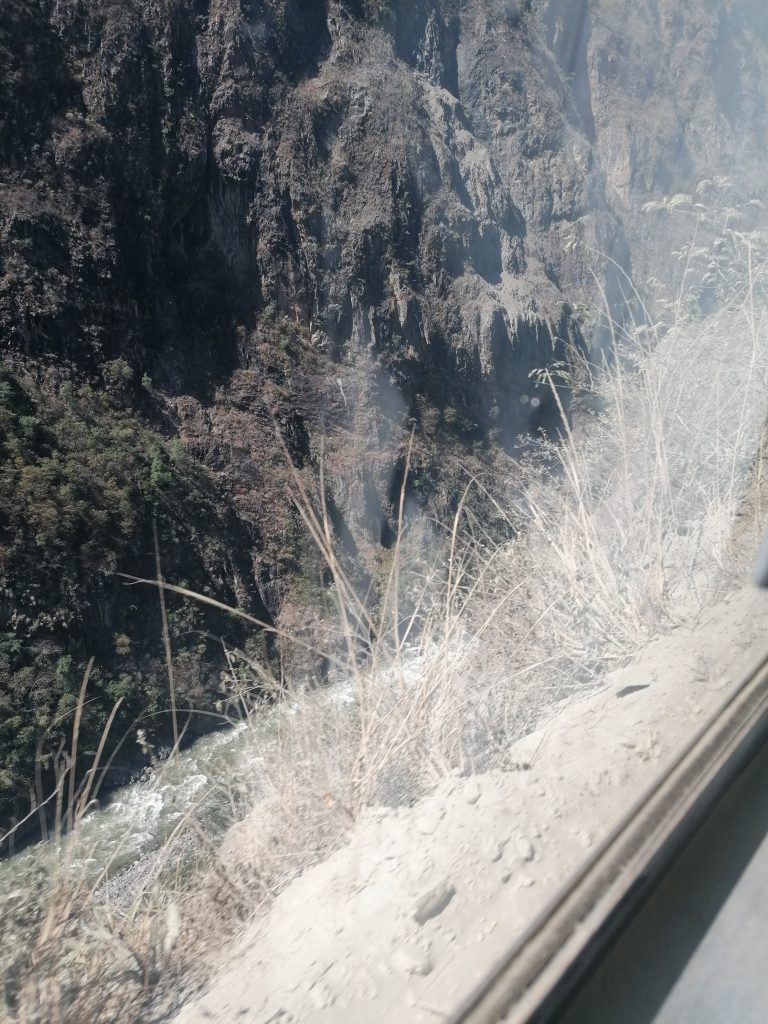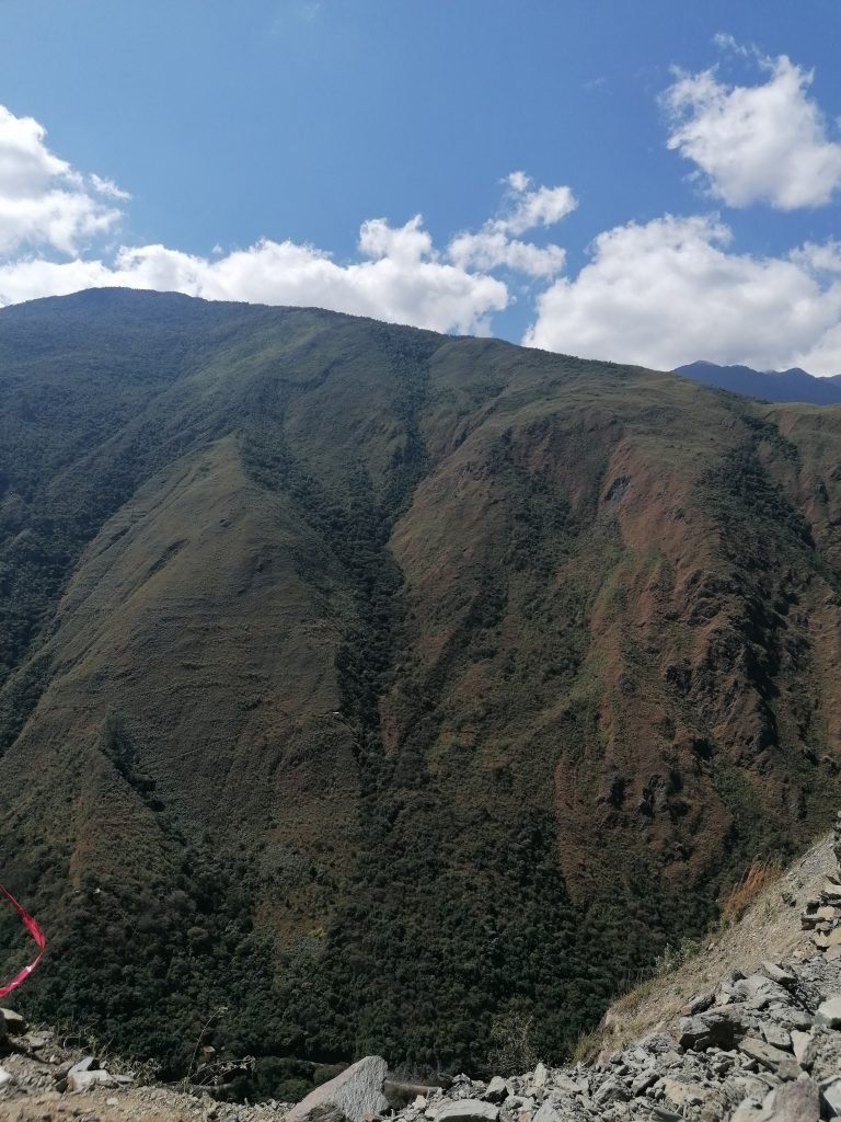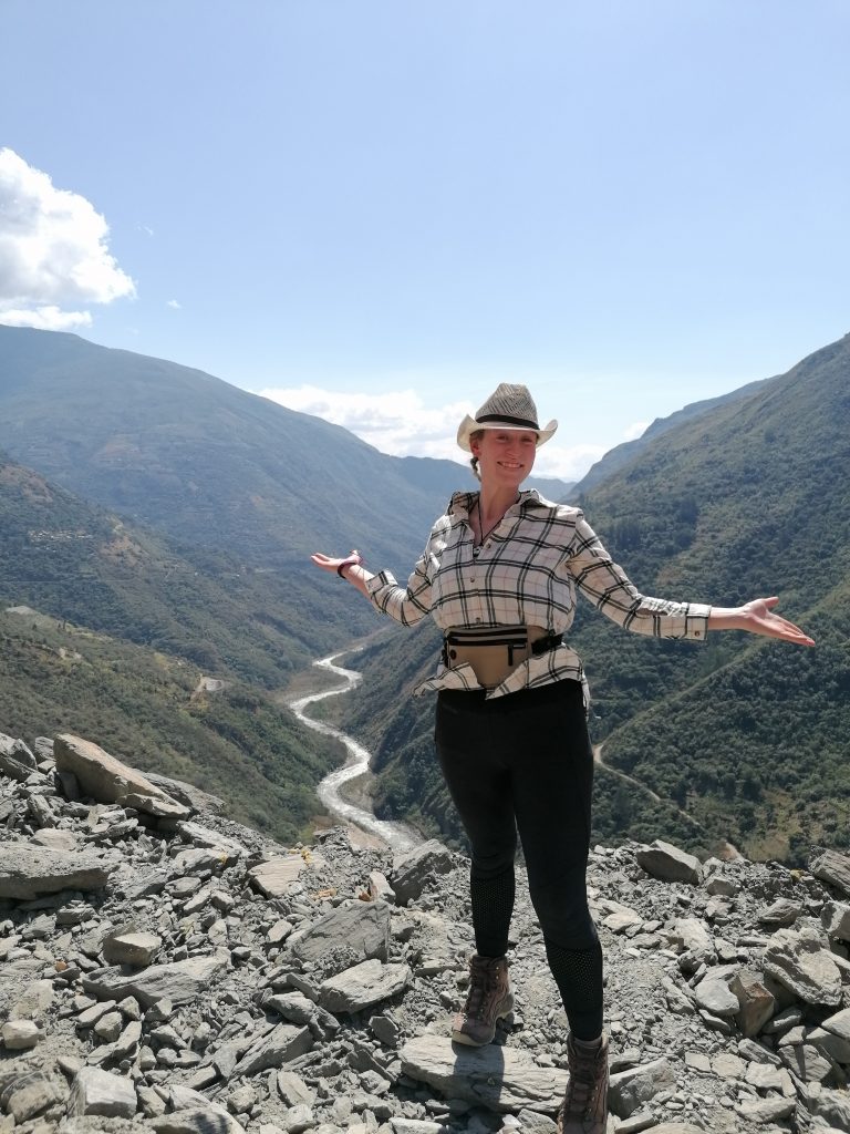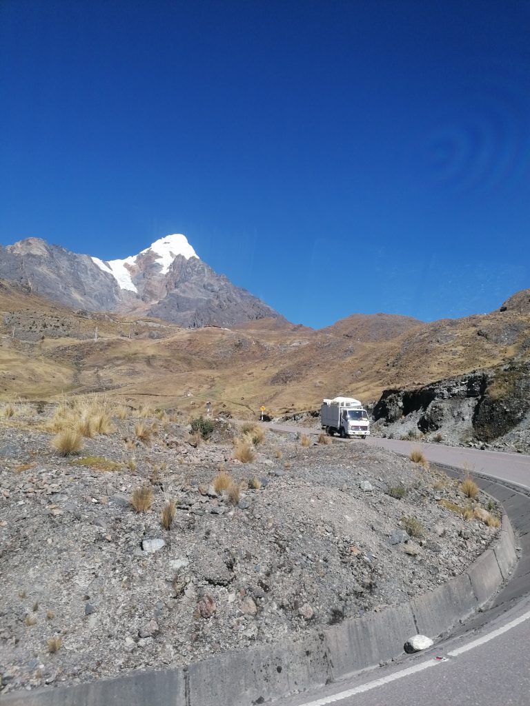 Zu Beginn ist die Straße noch okay, doch je tiefer wir in die Berge fahren, desto abenteuerlicher wird es. In Bolivien haben sich einige gewundert, dass wir die berühmte „Death Road“ nicht besuchen. Eine Straße, von der so viele Autos und Busse abgestürzt sind, dass sie (ich meine, jemand hätte erzählt, von den USA) saniert und für sämtliche Fahrzeuge gesperrt wurde. Heute kann man sie als Touri-Attraktion mit dem Fahrrad abfahren. Ich hab absolut gar nichts verpasst, sondern fahre hier und jetzt eine peruanische Deathroad in einem Minibus entlang. Der Ausblick ist gigantisch und weit… den 10 cm neben unseren Rädern hört der Boden auf und es geht hundert Meter in die Schlucht hinunter, wo der schöne Fluss entlangfließt. Außerdem ist überall Baustelle, weil die Straße offenbar gerade saniert wird (Hallelujah!), was das Abenteuer noch lustiger macht. Einige Stellen sind so schlammig und so knapp, dass sich der komplette Bus instinktiv nach links in Richtung Felswand lehnt. Ehrlich Leute, ich hab es nicht nur einmal mit der Angst zu tun gekriegt.
