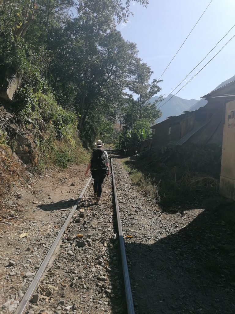 Gegen frühen Nachmittag kommen wir in Hidroelectrica an. Ale und ich cremen uns nochmal gut ein und machen uns dann auf den Weg zum Fußmarsch. Von hier aus müssen wir zu einem kleinen Dorf, an dem die Zugstrecke beginnt. Wir folgen einfach nur den Gleisen.
