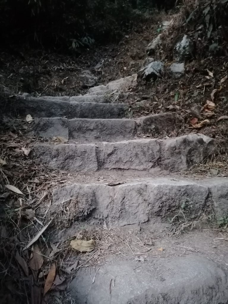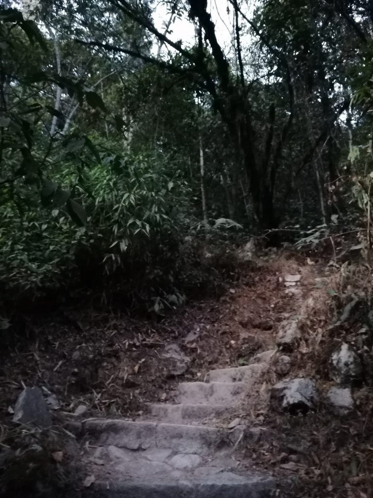 Aber wir gehen trotzdem bald ins Bett, schließlich haben wir einen aufregenden nächsten Tag vor uns. Der Wecker klingelt um 4:30 Uhr, wir wollen um fünf los. Unsere Tickets sind für das Zeitfenster um sieben, so haben wir genug Zeit, die vielen Stufen zu erklimmen. Noch ist es stockfinster. Wir laufen raus aus dem Dorf, ein Stück zurück den Weg, den wir gekommen sind, dann weiter nach unten zum Ausganspunkt. Dort werden unsere Tickets schonmal kontrolliert, dann beginnt der Aufstieg. Vor uns liegen etwa 1:30h Treppenaufstieg. Langsam wird es auch etwas heller, sodass ich die Taschenlampe ausschalten und mein Handy für Fotos nutzen kann. Es ist nämlich herrlich schön.