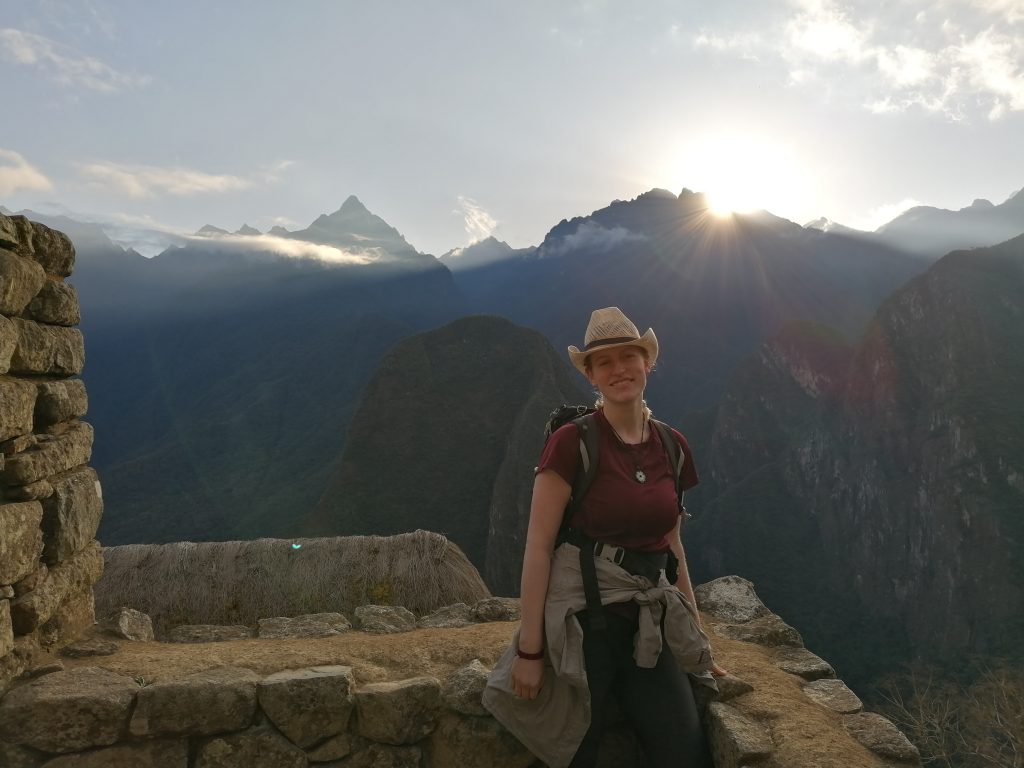 Wow. Kurz darauf kommen wir oben an, werden angequatscht, ob wir einen Guide wollen, entscheiden uns vorerst dagegen und werden dann eingelassen. Wir fonlgen den Menschen (viel weniger, als ich dachte) hinein und bleiben auf einem Aussichtspunkt stehen. Genau in diesem Moment geht hinter den Bergen die Sonne auf und wirft erste Strahlen auf die altehrwürdige Inca-Stadt. Ich schließe die Augen, atme tief ein und spüre die Energie dieses Ortes. Ich bin sonst echt wenig astrologisch veranlagt, aber ich sag’s euch, dieser Ort pulsiert, vor allem in diesem Moment.