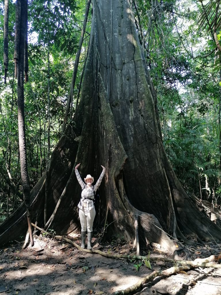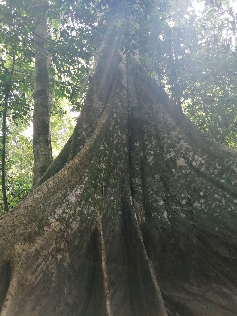 Adriano erklärt uns wieder verschiedene Baumarten, unter anderem den größten Baum im Amazonas: Der Ceiba-Baum. Wird bis zu 75 Meter hoch, einer ist 450 Jahre alt. Er erklärt, die Samen dieser Bäume werden von Insekten gefressen, sodass sie sich nicht übermäßig ausbreiten. Die Natur hatte das vollkommen im Griff… bis der Mensch eingegriffen hat und viele der Ceiba-Bäume gefällt hat. Jetzt gibt es nur noch wenige. Später lese ich noch, dass der Ceiba-Baum heilig war für Maya, Azteken und andere indigene Kulturen. Er war die Verbindung zwischen dieser Welt zu anderen Welten über und unter ihm.