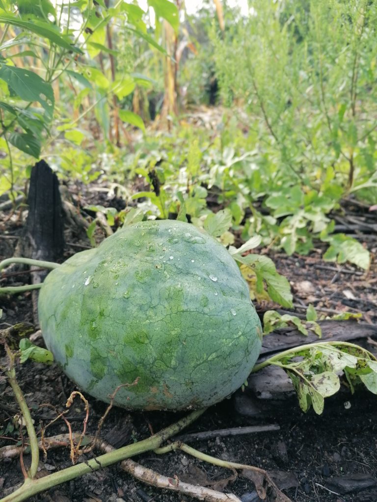 Adriano erklärt uns kurz, was im Garten wächst: Wassermelone, Papaya, Chili, Aloe Vera, Mais und noch ein paar andere Sachen. Echt cool.