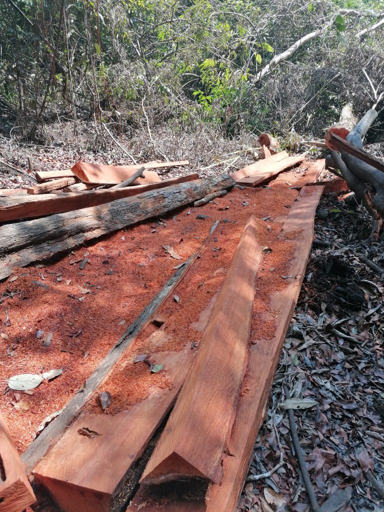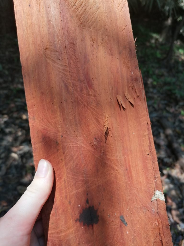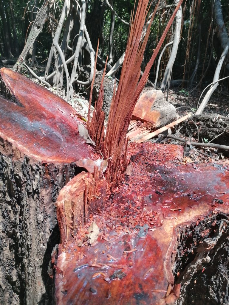 Wir laufen an einem Baum vorbei, der gefällt wurde… und nachdem Adriano uns so viel über die Heilkraft und Besonderheit der Pflanzen erzählt hat, wirkt es ein bisschen wie ein Massaker, diesen gefällten Baum zu sehen. Liegt vielleicht auch an der rötlichen Farbe des Holzes.