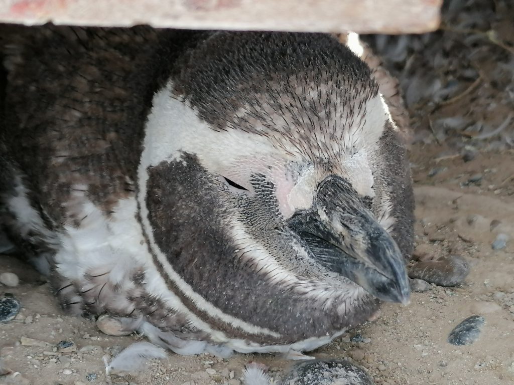 Und für alle die es wissen wollen: Nein, man soll sie nicht anfassen, ja, ich hab’s trotzdem gemacht und JA, SIE SIND FLAUSCHIG! Von einem Pinguin gepickt zu werden, tut übrigens mehr weh als von einem Huhn, weniger als von einem Schwan. Aber man muss ihnen lassen, dass sie ziemlich mutig sind und sich eher verteidigen, als wegzulaufen… also zu watscheln… gut, da muss man sich vielleicht eher verteidigen können, besonders schnell sind sie ja nicht. Und im Moment wirkt es sowieso, als würden wir sie mitten in der Mittagssiesta stören.