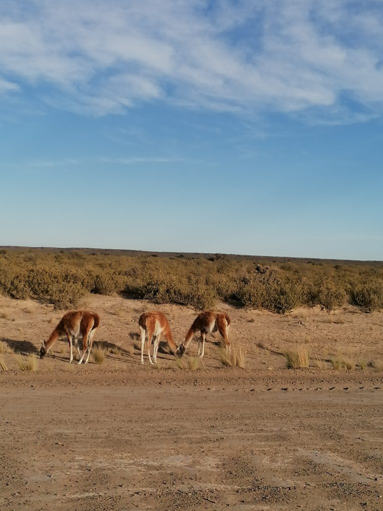 Auf dem Rückweg läuft uns noch ein Gürteltier über die Straße, glücklicherweise kann Peter noch ausweichen. Foto können wir leider keins machen. Dafür schaffe ich es endlich mal ein Foto vom Guanaco zu machen, irgendwie hatte ich dazu nie eine Gelegenheit. Hier sind sie also: