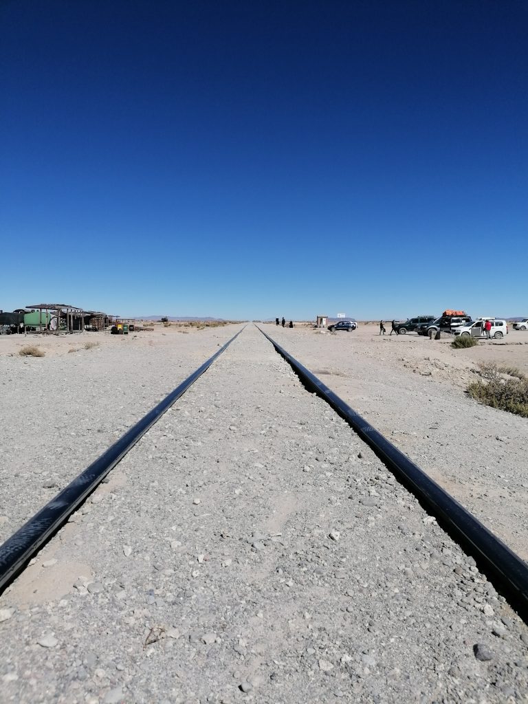 Bolivien hat den größten Anteil an indigener Bevölkerung in ganz Südamerika. Vor allem die Frauen stechen hier ins Auge, die die traditionelle Cholita-Kleidung tragen, große bunte Röcke, eine Bluse/Jacke und einen Hut. Fast alle haben ein großes Tuch in schreienden Pink-grün-rot Farben umgebunden, darin tragen sie auf dem Rücken alles Mögliche, von Einkäufen bis Kleinkindern. Wir steigen aus und stehen in den Abgasen der großen Straße von Uyuni. Menschen laufen und schreien durch die Gegend, uns fliegen sofort Angebote für Taxis oder Touren entgegen. Der Ort ist nicht groß, er dient hauptsächlich als Ausgangspunkt für die Touren in die berühmte Salzwüste von Bolivien. Unser Hostel ist nicht weit, deshalb werden wir laufen. Internet habe ich noch keines, wir folgen meiner Fotografie von Google Maps und kommen schließlich am Hostel an.