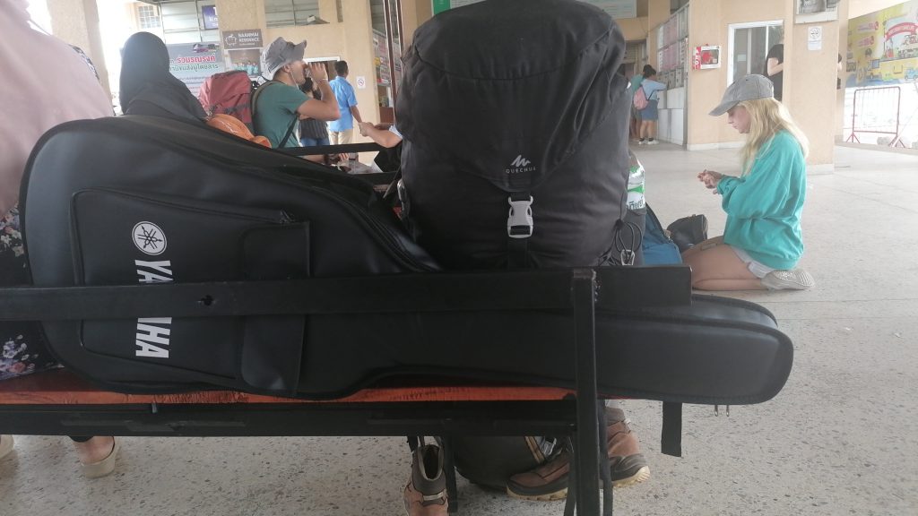 Gegen vier Uhr nachmittags werde ich von einem älteren Herrn abgeholt. Er will mir freundlich eine Tasche abnehmen, aber ich lehne ab. Das tut ich häufig. Nicht nur, weil ich den Leuten nicht immer traue, sondern auch, weil ich mich selbst darauf trainieren möchte, mit den drei Tasche klarzukommen. Es dauert eine Weile, bis wir es schaffen, auf die andere Straßenseite zu kommen, viel Verkehr um die Uhrzeit. Dann lässt er mich in einen sehr heruntergekommenen Kleinbus steigen, in dem außer mir noch niemand sitzt. Wir fahren ein Stück durch die Stadt, dann halten wir nochmal und es steigen drei Frauen zu. Eine der Frauen ist die Ehefrau des Fahrers, sie koordiniert unsere Fahrt zur Busstation. Die Sonne beginnt zu sinken, als wir durch Bankok fahren, fast bis ans andere Ende. Dort steigen wir an einem großen Busterminal aus und folgen der Frau, die uns führt. Der Mann bleibt im Bus und verabschiedet sich. Die Frau bittet uns in einem Warteraum zu warten und möchte unsere Reisepässe haben. Im ersten Moment bin ich nicht begeistert, aber da die anderen beiden ihr den Pass übergeben, tue ich es auch… zögerlich.