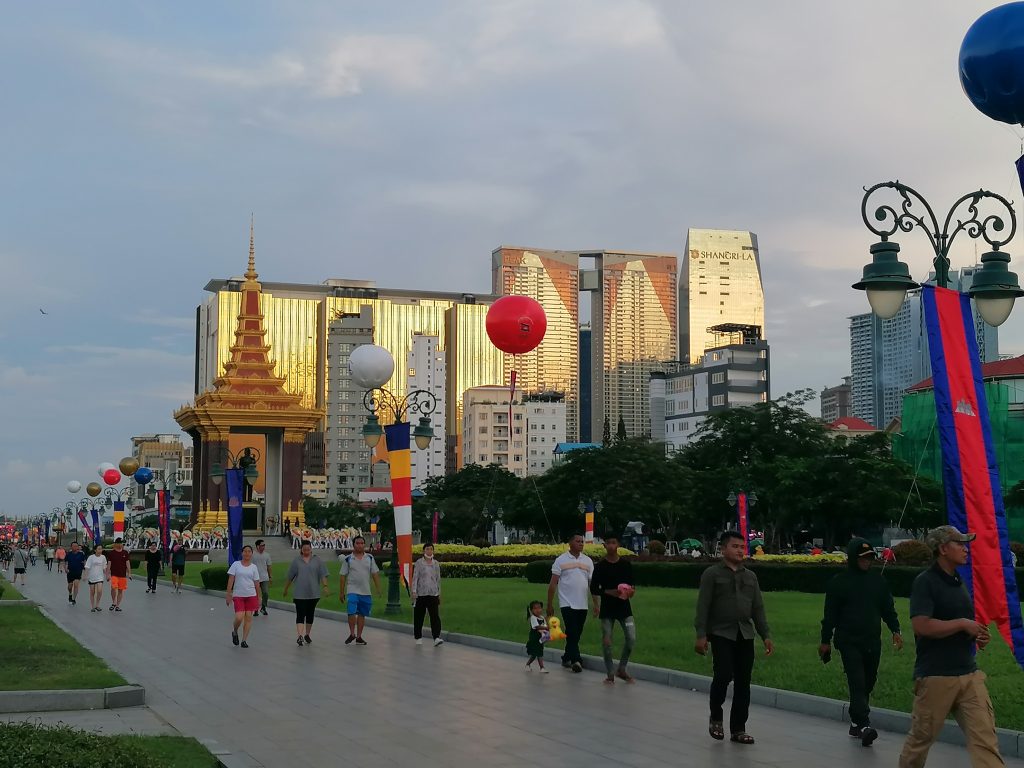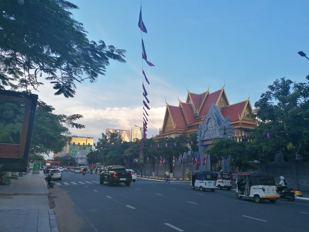 Mein erster Eindruck von Phnom Penh ist überraschend gut. Sauber, modern, als ich mich in Richtung Stadtmitte begebe finde ich einen beeindruckenden Mix aus prächtigen Tempeln und gläsernen Hochhäusern.
