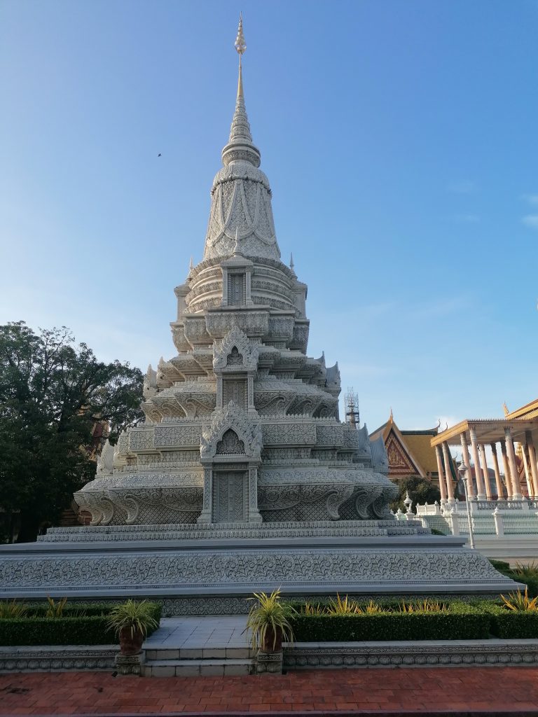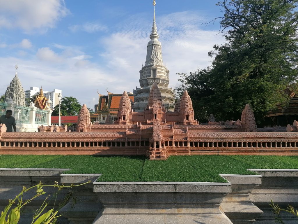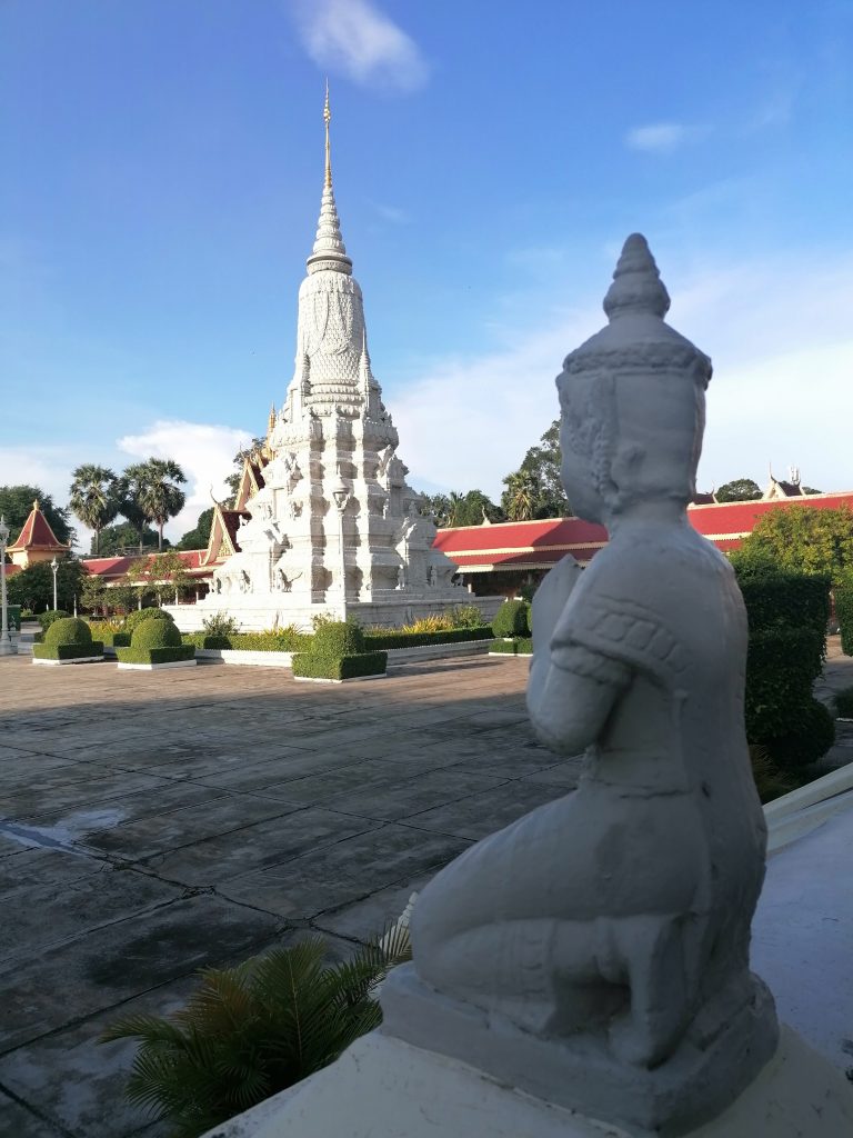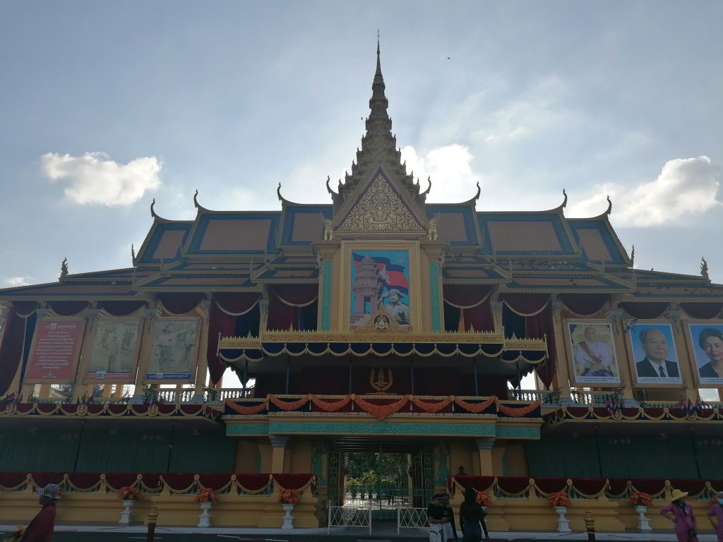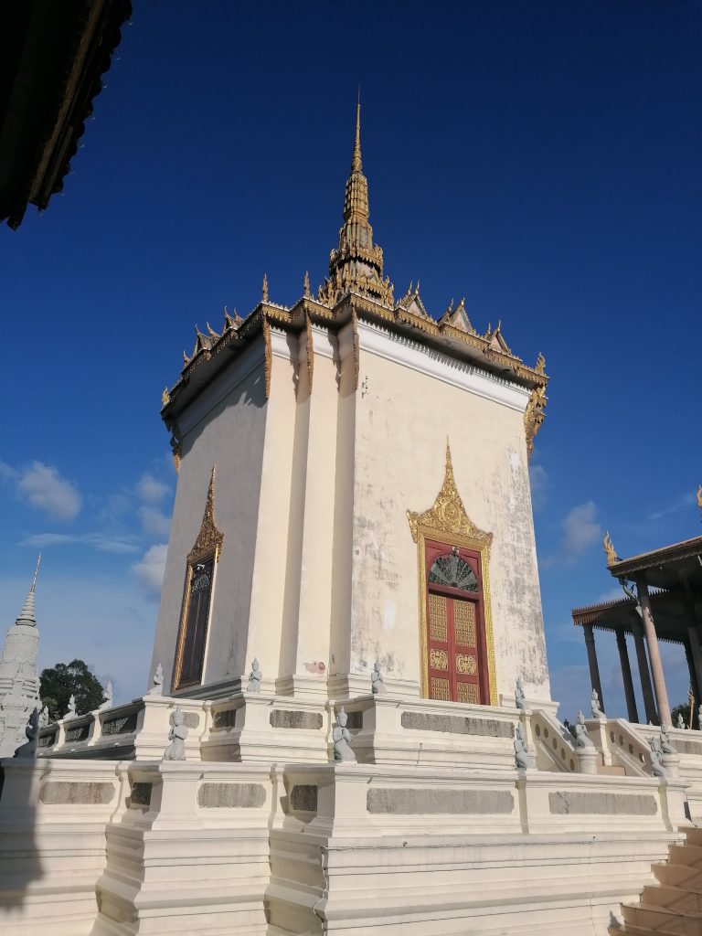 Die Palastanlage ist wunderschön. Der Garten ist perfekt frisiert, mit exotischen Blumen tollen Skulpturen verziert. Die verschiedenen Gebäude sind fabelhaft. In Vietnam habe ich die Architektur ja schon ein bisschen bewundern können, aber dort war alles eher rustikal, aus Holz und…. Verglichen hiermit… eher basic. In Kambodscha ist alles aus Gold!