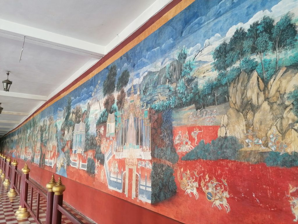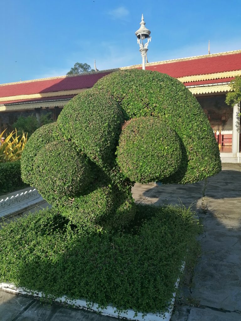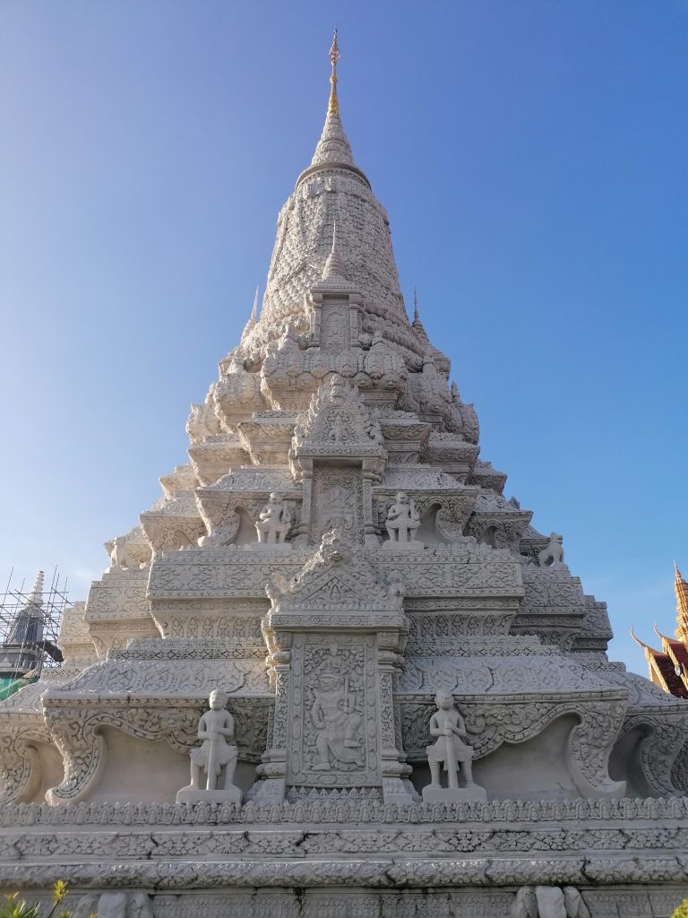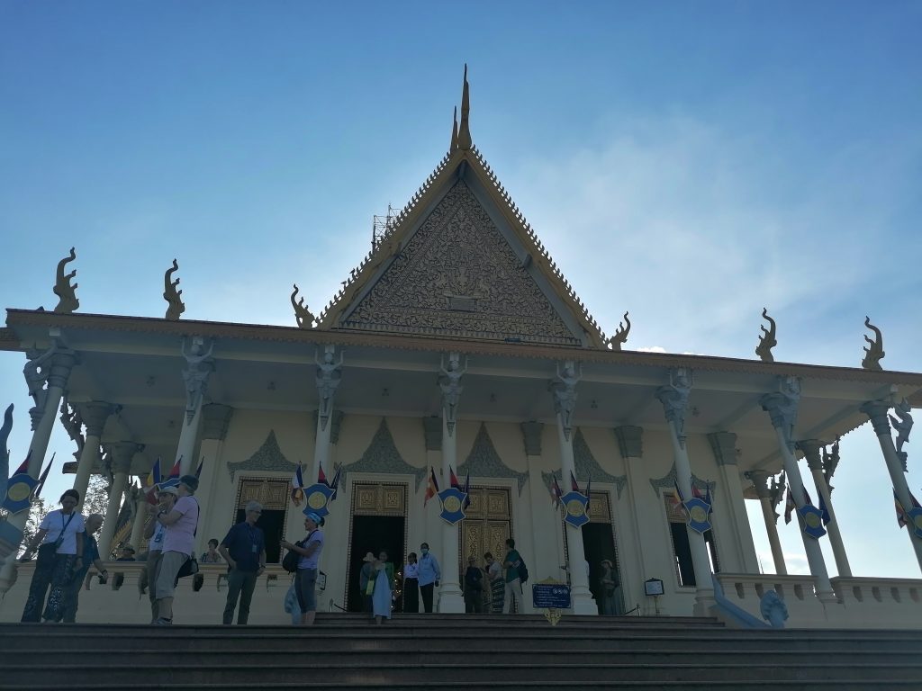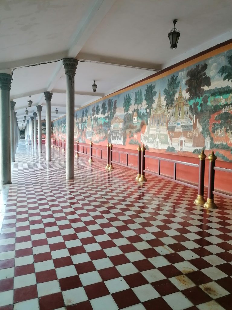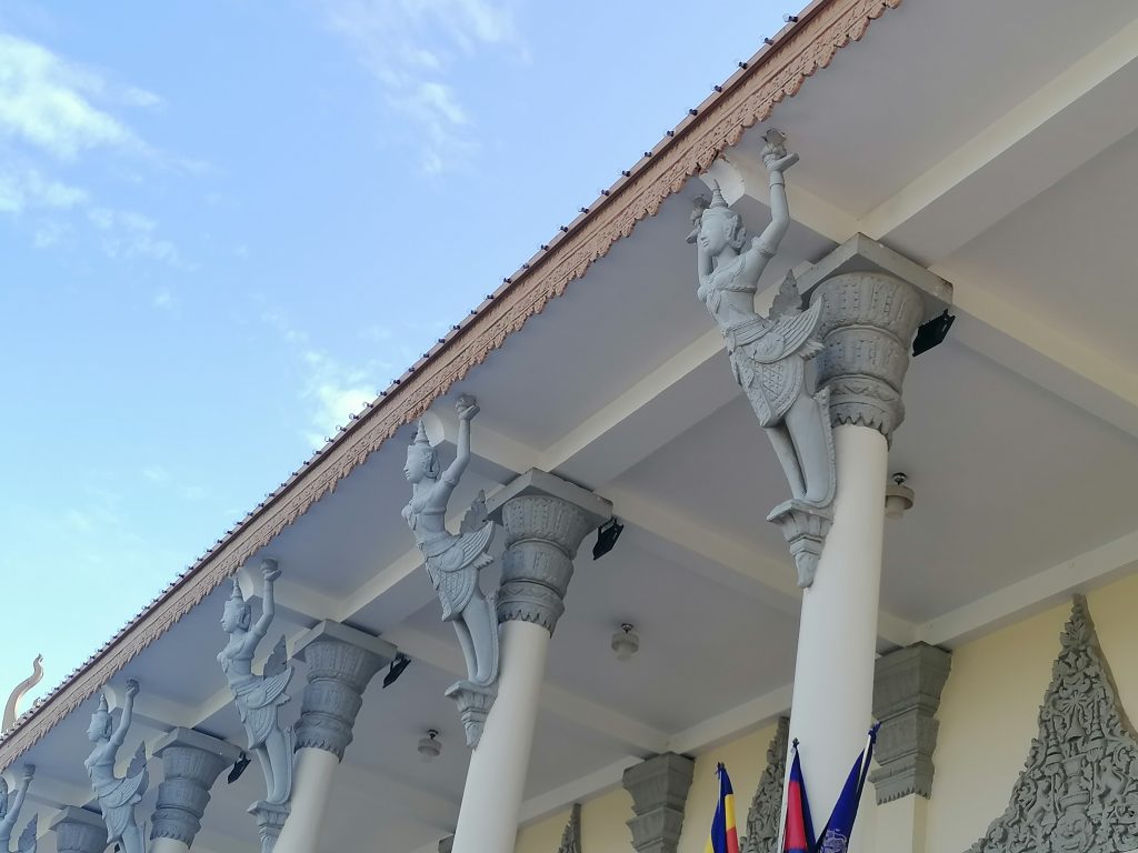 Die Palastanlage ist wunderschön. Der Garten ist perfekt frisiert, mit exotischen Blumen tollen Skulpturen verziert. Die verschiedenen Gebäude sind fabelhaft. In Vietnam habe ich die Architektur ja schon ein bisschen bewundern können, aber dort war alles eher rustikal, aus Holz und…. Verglichen hiermit… eher basic. In Kambodscha ist alles aus Gold!