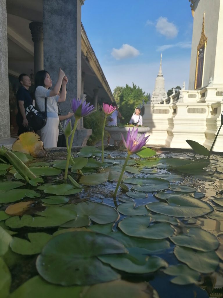 Und ich erwische nebenbei ein paar der buddhistischen Mönche auf meinen Fotos. Das ist immer noch eine neue Sichtung für mich und ehrlicherweise eine spannende. Ich weiß überhaupt nichts über Buddhismus und bin neugierig mehr zu erfahren. Die knallig orangenen Roben sind immer wieder ein Blickfang. Ich traue mich aber nicht, jemanden anzusprechen und um ein Foto zu bitten. Ich hab online gelesen, dass das total in Ordnung ist, aber es fühlt sich unhöflich an. Wahrscheinlich, weil ich mich schon wie eine Verbrecherin fühle, nur eine Frau zu sein, nachdem ich die Kleiderinstruktionen neben den Tempeleingängen gelesen habe.