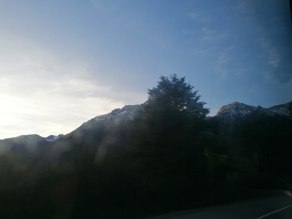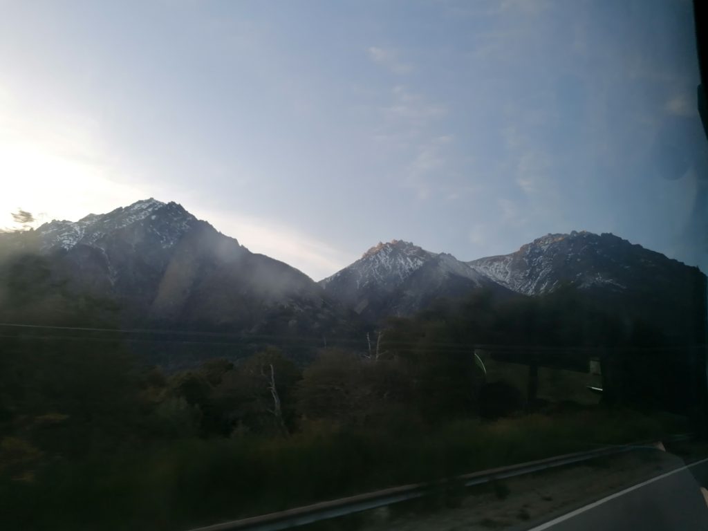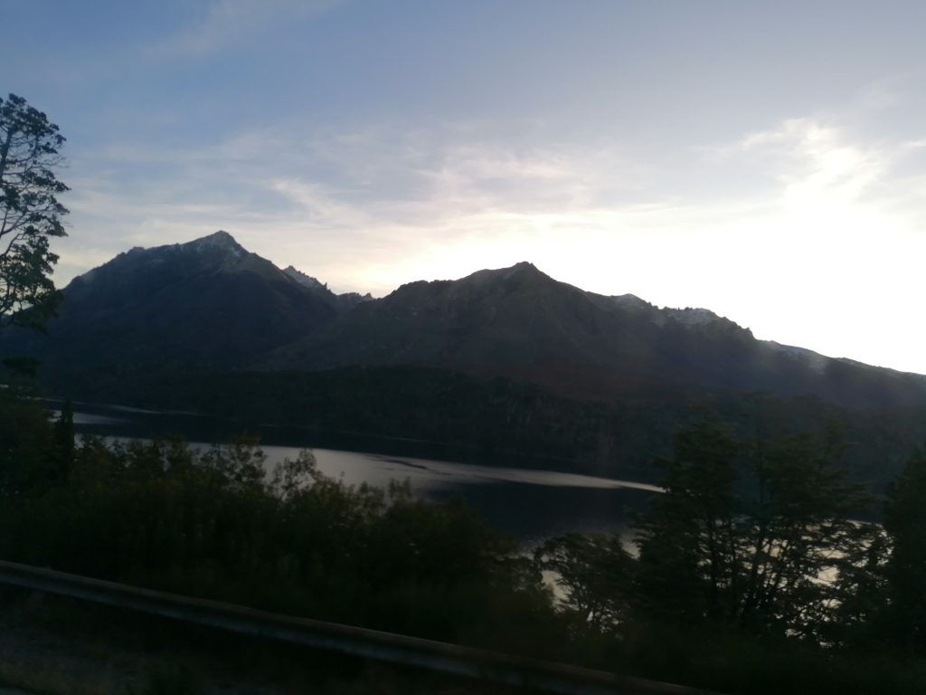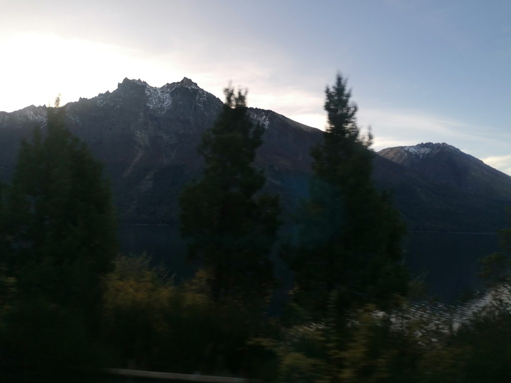 Den ersten Teil der Fahrt nach Bariloche verpenn‘ ich natürlich, aber ich bin froh, dass ich rechtzeitig aufwache, um die hübsche Landschaft vorbeifliegen zu sehen. Es wird deutlich grüner, die Berge sind ein Traum und bald kommt der erste schöne See in Sicht. Über dem sehe ich einen Berggipfel, den ich gar nicht genug anhimmeln kann. Ob man da hinkommt? Sieht zwar anstrengend aus, aber da hätte ich schon Lust drauf. Maria hat mich ein bisschen angesteckt mit dem „Fotos aus dem Bus machen“, obwohl ich immer noch finde, dass die nie so richtig gut werden und man die Essenz nicht wirklich sieht. Aber gut: