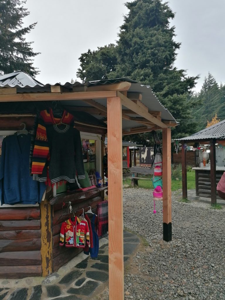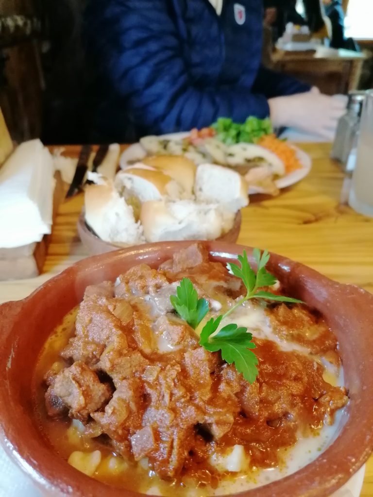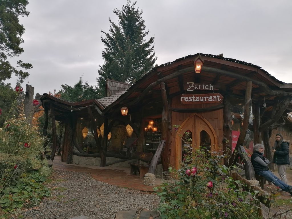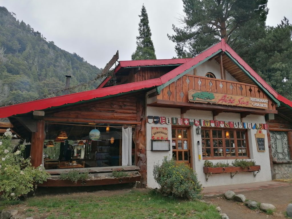 Die Fahrt ist toll. Die Seen und Berge um Bariloche sind ein Traum, alles ist grün oder türkisblau… es ist wirklich wie in der Schweiz. Der Bus arbeitet sich raus aus der Stadt, bis kleine hölzerner Häuser in Sicht kommen und schließlich ein kleines Dorf im Hüttenstil, sehr touristisch, aber gut, was will man erwarten. Wir steigen aus, sehen uns um und suchen uns erstmal was zu essen. Das ist nicht sonderlich schwer. Auf der Karte steht Gulasch mit Kässpätzle… das muss ich einfach probieren. Es schmeckt gut… aber wer das Original kennt, ist doch ein kleines bisschen enttäuscht. Es fehlt einfach der kräftig-würzige Nachgeschmack.
