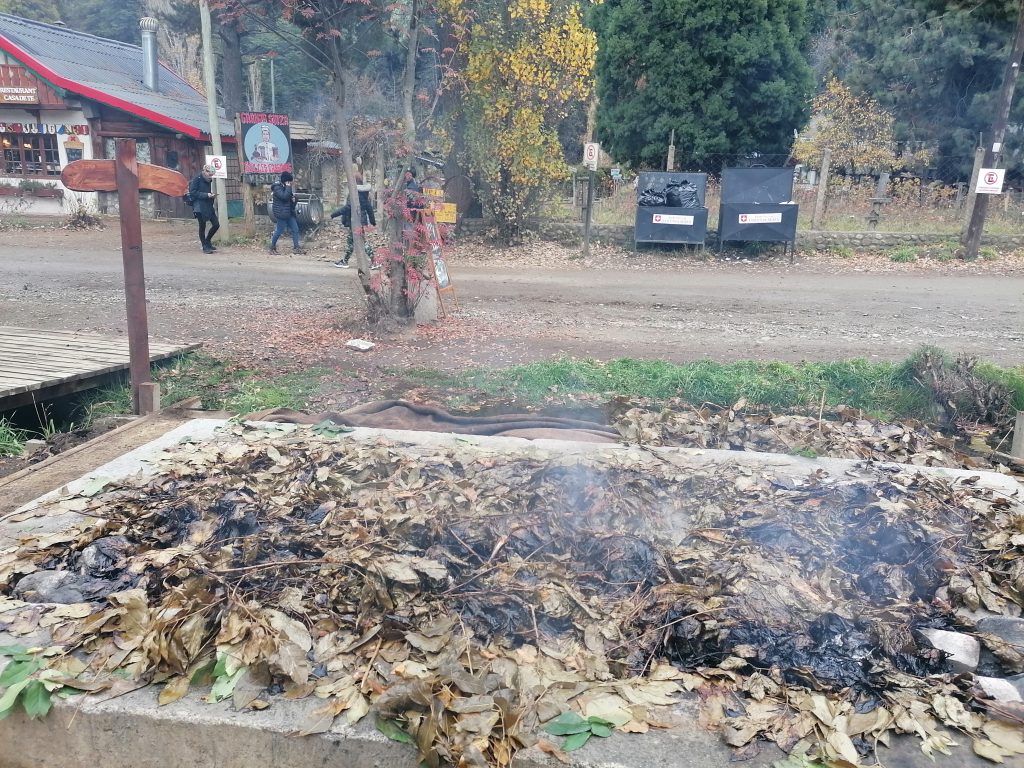 Nach dem Essen laufen wir ein bisschen durchs Dorf, sehen uns die Häuser an, die Restaurants. Vor einem Restaurant qualmt es gewaltig, rauchende Blätter liegen auf fast vier Quadratmetern auf dem Boden. Ich weiß nicht, ob darin etwas gebacken wird oder ob es einfach als Wärmequelle gilt.