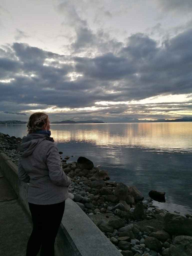 Alles in allem ein bisschen wie ein Weihnachtsmarkt… nur ohne Schnee. Der kommt aber bald, der Winter steht vor der Tür. Dann ist es sicher ein wunderschöner Ausflug. Nadine und ich setzen uns wieder in den Bus nach Bariloche und erwischen genau den richtigen Zeitpunkt zum Sonnenuntergang. Wir gehen zum See, wo man eine kleine Promenade entlang spazieren kann: