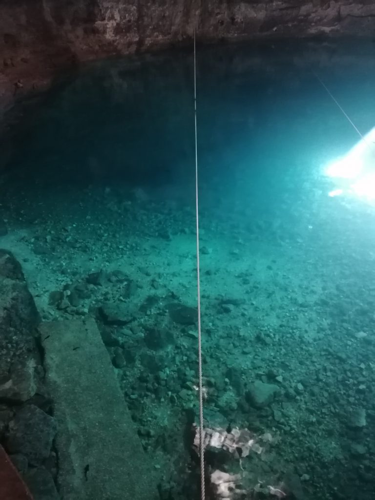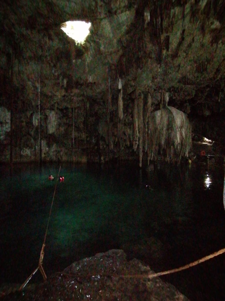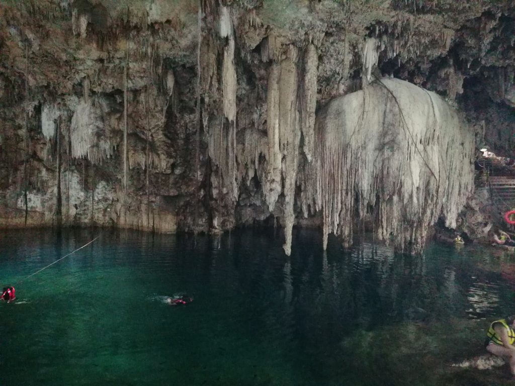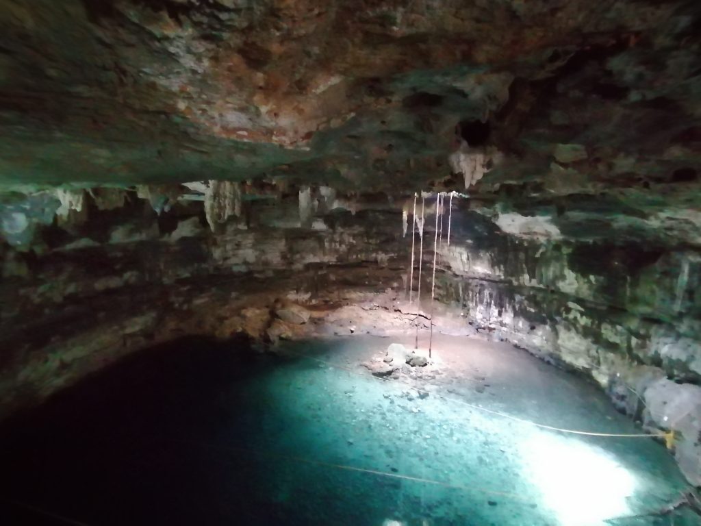 Wie ist das alles denn entstanden? Und warum gibt es gerade hier in Mexiko so viele? Die Erklärung ist so einfach wie faszinierend: Vor etwa 60 Millionen Jahren schlug ein Meteorit auf der Erde ein, der die Dinosaurier binnen kurzer Zeit auslöschte… und zwar offenbar genau hier, auf der Halbinsel Yucatan. Der nahegelegene Chicxulub-Krater soll das Überbleibsel sein. Von dem Einschlag lösen sich kleine Splitter des Meteoriten, bilden ihrerseits Minimeteoriten und schlagen überall auf der Insel verteilt ein… Winzige Geschosse, die ein Loch in den Boden schlagen, der sich von dem Einschlag zu einem kugelförmigen Hohlraum formt und so tief in der Erde versinken, dass sie unterirdische Flüsse öffnen, die den Hohlraum mit Wasser füllen.