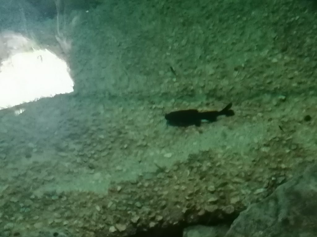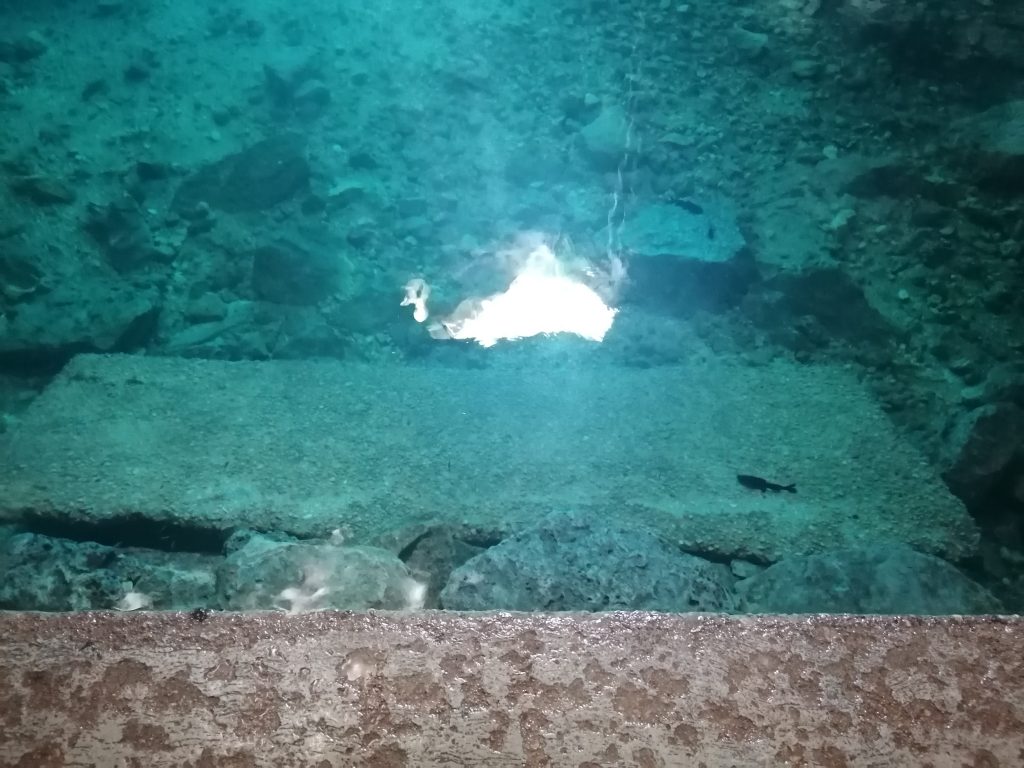 Sobald man die Füße ins Wasser hält – und still bleibt – kommen diese kleinen Fische, die einem die alte Haut abknabbern. Die hier sind wirklich winzig klein, das Gefühl ist zuerst seltsam, aber eigentlich ganz angenehm. Ich bleib eine ganze Weile sitzen und genieße die kostenlose Pediküre. Dann atme ich tief durch und lasse mich ins Kühle Wasser gleiten. Es ist sooo angenehm und soo schön… An vielen Stellen kann man den Boden sehen, oft sogar stehen… und dann gibt es diese eine dunkle Stelle, an der der Boden schwarz wird und die Tiefe gefühlt und endlich. Ich frage später den Mann, der hier aufpasst: 15 Meter geht es dort in die Tiefe.